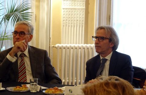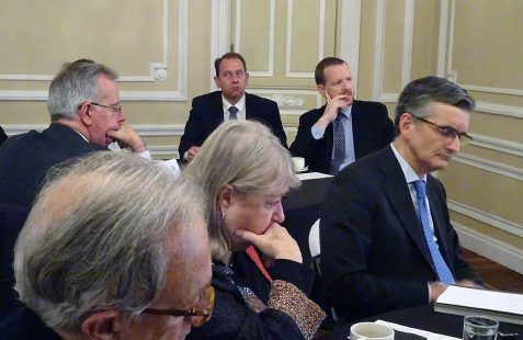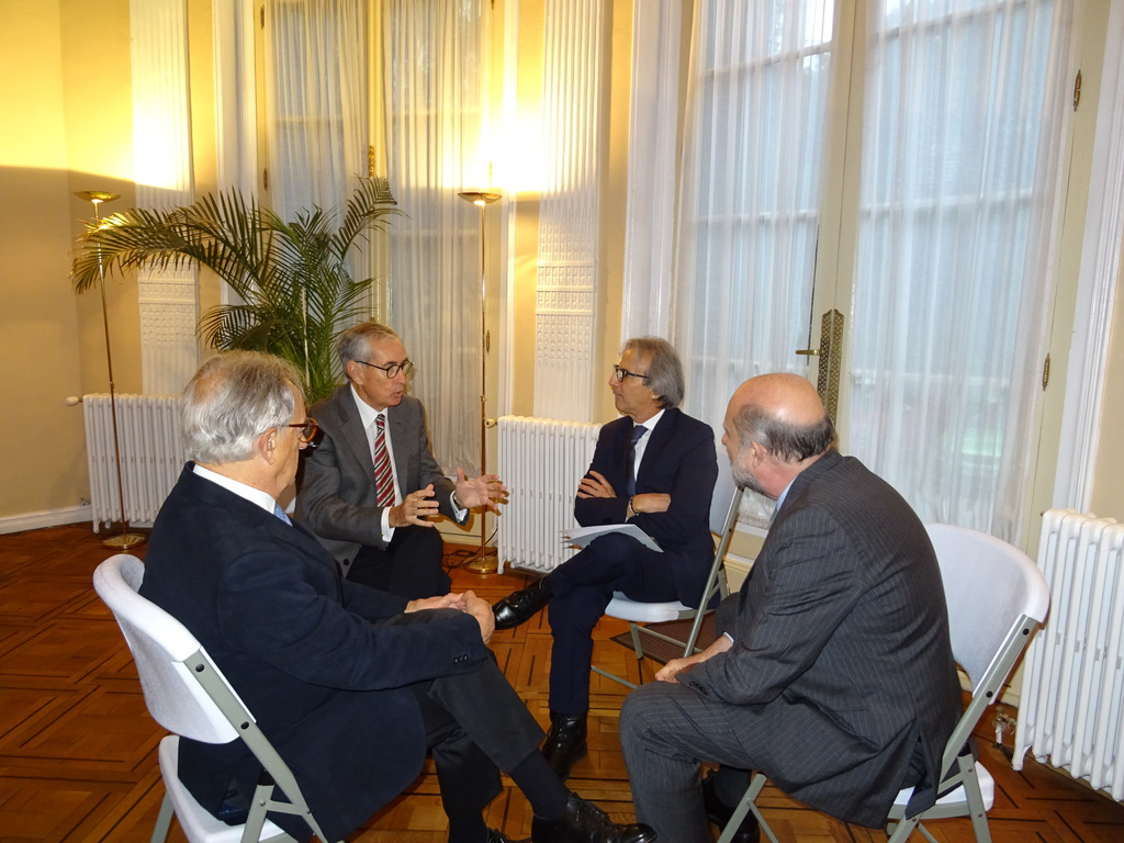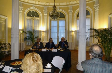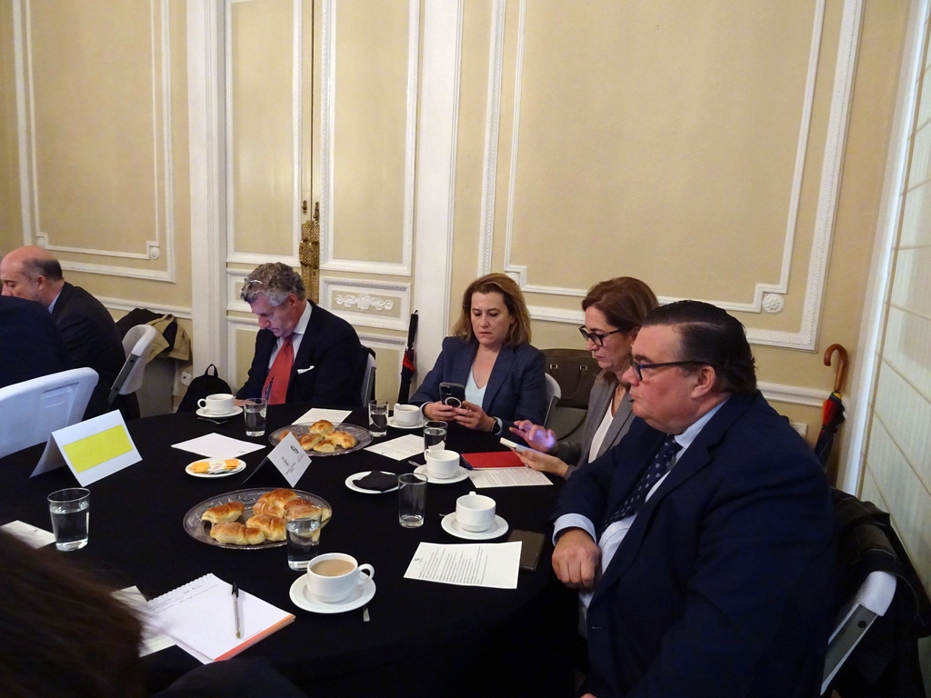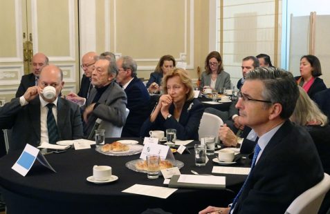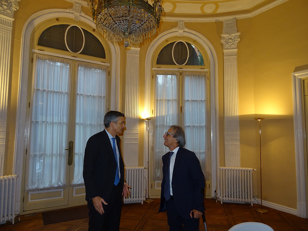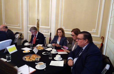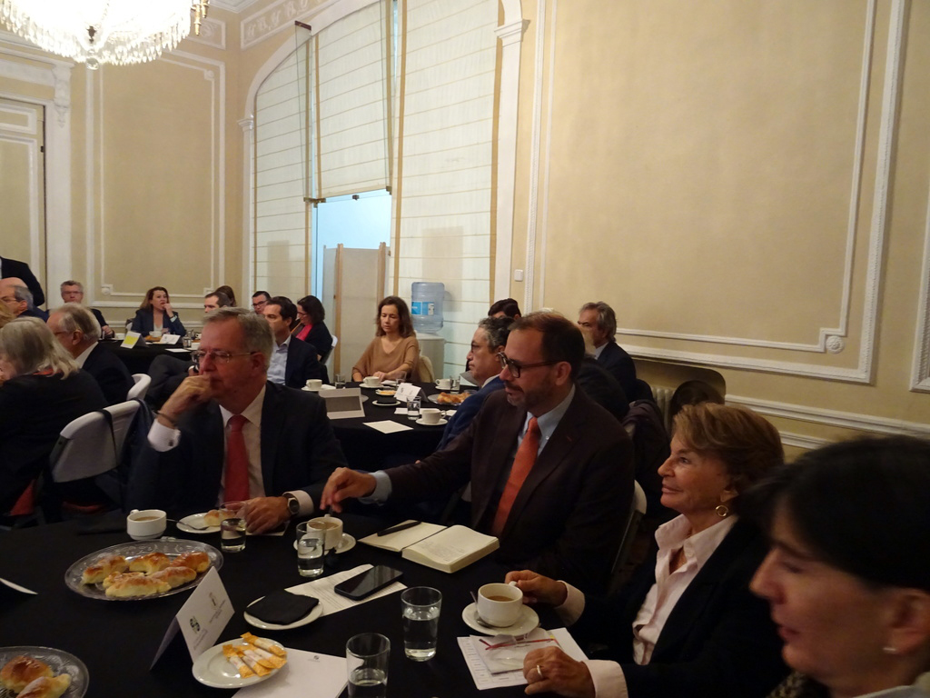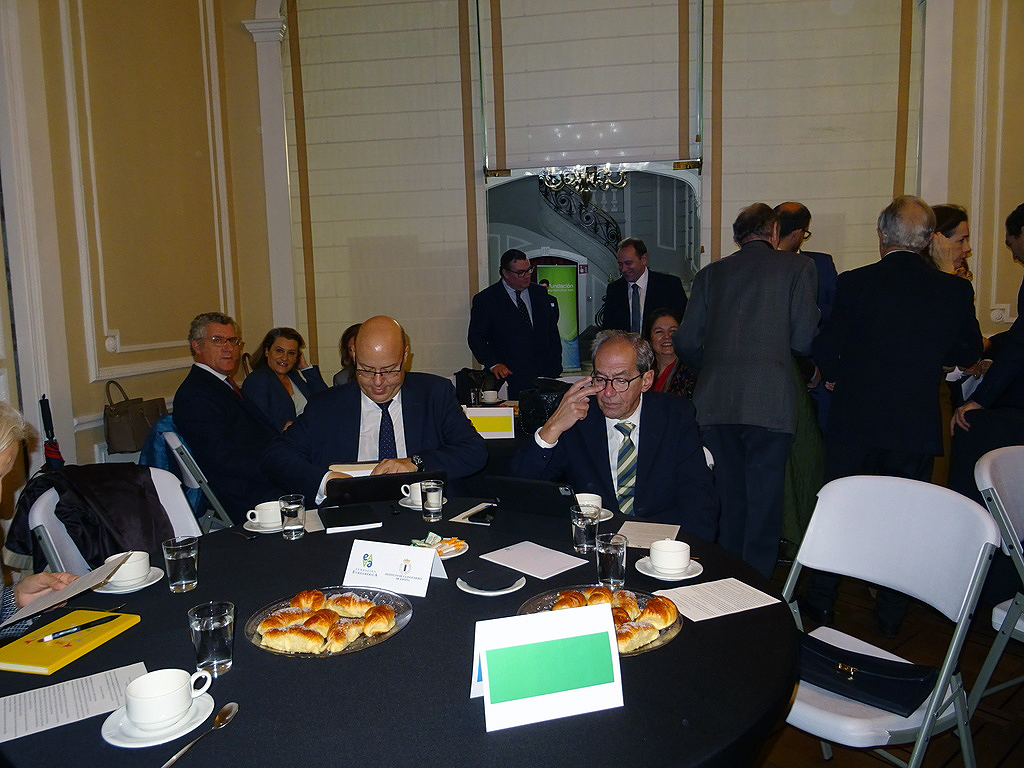 A continuación dio comienzo un interesante coloquio con la intervención de varios asistentes, en el que se plantearon diferentes temas pero centrado en gran parte en el objetivo de la Paz Total para el que el embajador indica que se necesita financiación esperando contar con la ayuda de España como puente hacia la UE. En este sentido se recuerda la existencia de un Fondo Fiduciario de la UE, mecanismo de cooperación al desarrollo que permite contribuir de forma eficaz y coordinada a las necesidades en materia de consolidación de la paz y desarrollo económico y social de los territorios más afectados por el conflicto armado, canalizando los aportes provenientes de sus donantes. Otros temas fueron la apertura de la frontera con Venezuela, el multilateralismo, así como la necesidad de capacitación de técnicos que acompañen la transformación energética.