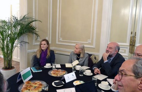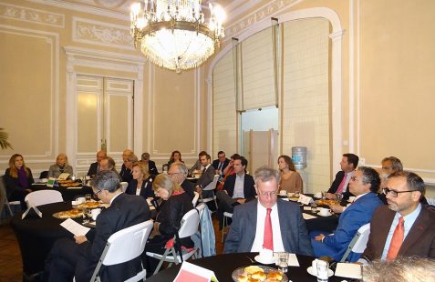 Hizo mención de los 100 primeros días de gobierno del presidente Petro con un balance muy positivo lo que indica en su opinión, que la agenda se está cumpliendo. Recuerda los retos esenciales para este gobierno como es la transformación ambiental y la evolución de una economía extractiva a una economía productiva, así como su proyecto de Paz Total cuyo objetivo es el desmantelamiento pacífico del crimen y por ello se conversará con bandas procedentes del narcotráfico, con el ELN, así como con facciones de las FARC. En este proceso será fundamental el apoyo internacional como acompañante de los diálogos de paz. La diplomacia internacional es de gran importancia.