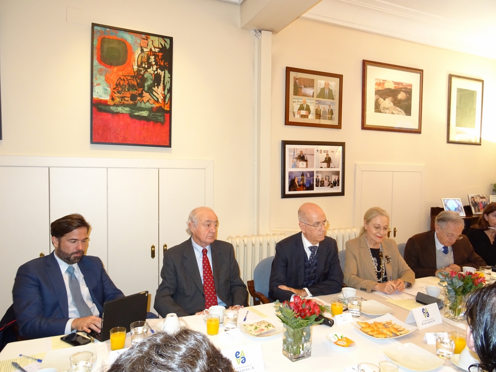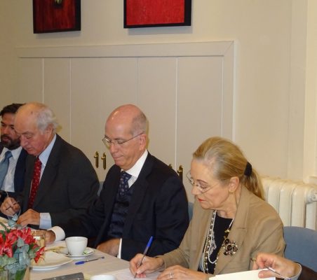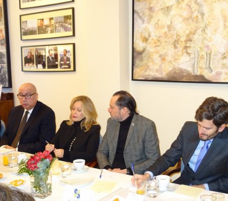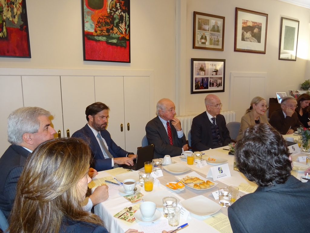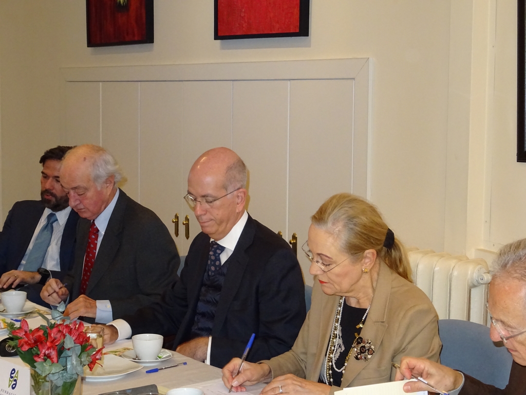 Tras sus iniciales palabras, y siguiendo el formato del desayuno, comenzó el coloquio con los asistentes hablando de varios temas como la evolución de la sociedad chilena en los últimos años; la abstención electoral y la desconfianza generalizada de la población en las instituciones del Estado y en la democracia; las ventajas e inconvenientes de la alternancia política con los mismos Presidentes; la relación de Chile con Estados Unidos; el papel de China en América Latina; la visita del Papa a Chile; la transformación digital; o el futuro del sistema de pensiones (AFP) y de salud en su país, entre otros.