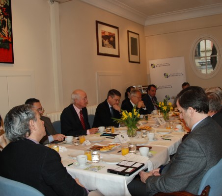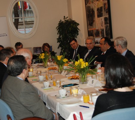 | Con motivo de la visita a Madrid del Viceministro Pacheco para la celebración de los premios José María Forqué de cine, tuvimos la oportunidad de celebrar un desayuno en su honor. El Viceministro, después de destacar la importancia de la industria del cine, sector generador de empleo, habló sobre la situación actual de Panamá y las interesantes perspectivas que genera la ampliación del Canal cuyas obras -según indicó- están ya realizadas en el 72%.Se estima que debido a la ampliación, el comercio podrá triplicar su volumen y se incrementará la inversión directa extranjera en el país que ya actualmente presenta cifras record ya que hay 104 empresas multinacionales con más de 5.000 ejecutivos ubicados en Panamá y utilizan el país como sede central para sus negocios en Latinoamérica.