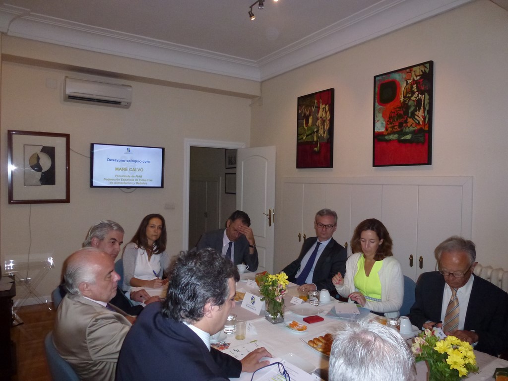 El Sr. Mané comenzó su intervención facilitando algunos datos del sector agroalimentario en España: es el primer sector industrial de nuestro país, que supone un 22,3% y 95.000 millones de euros al año. Da empleo a medio millón de personas, en más de 28.000 empresas. España, con un volumen de exportación de 26.000 millones de euros, es la sexta economía exportadora de la Unión Europea y la décima mundial. Entre los productos que más se exportan destacan: carnes, aceite de oliva, pescado, vino, conservas vegetales o dulces. Y como destinos principales señala: la U.E. (Francia, Italia, Portugal, Reino Unido y Alemania), Estados Unidos, China, Japón, México y Rusia.
