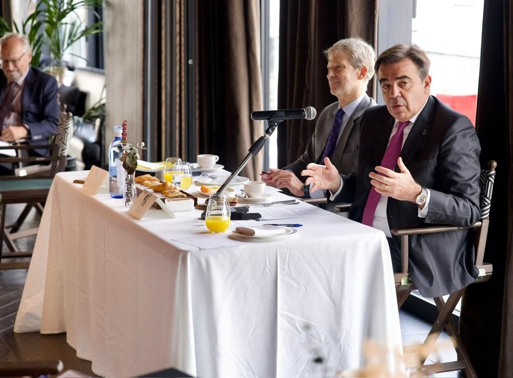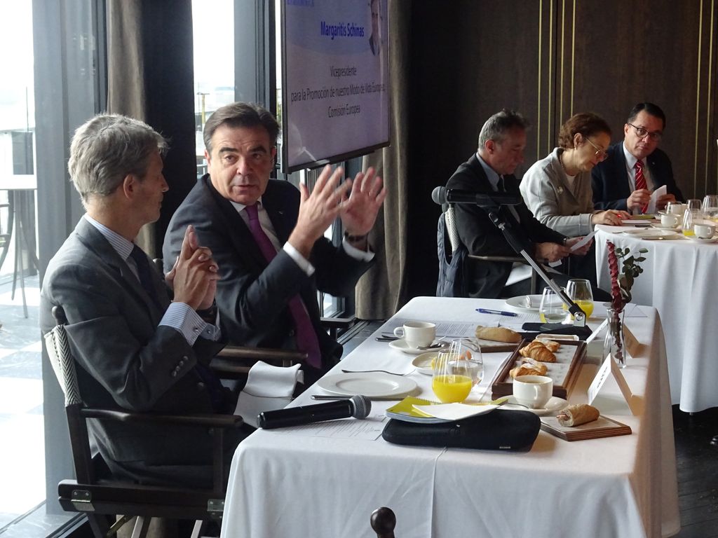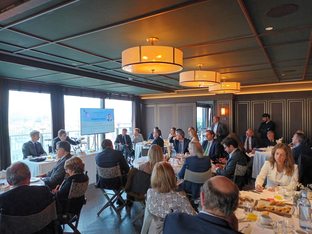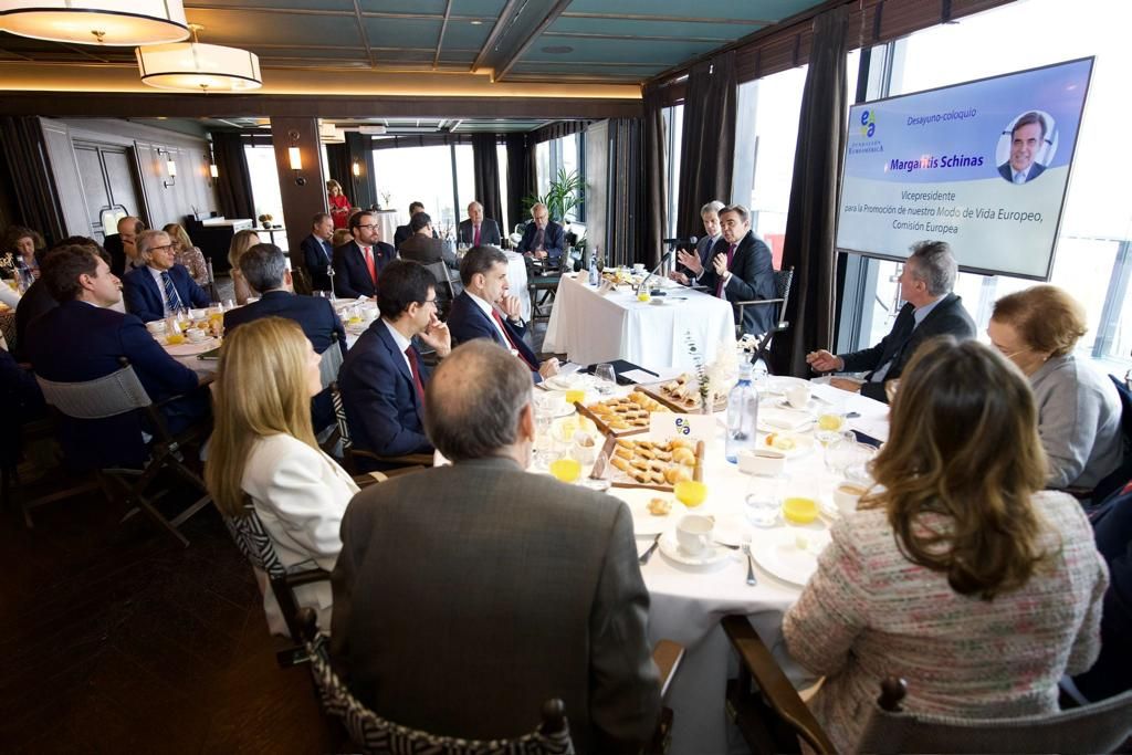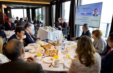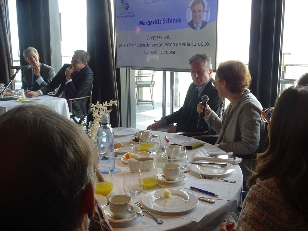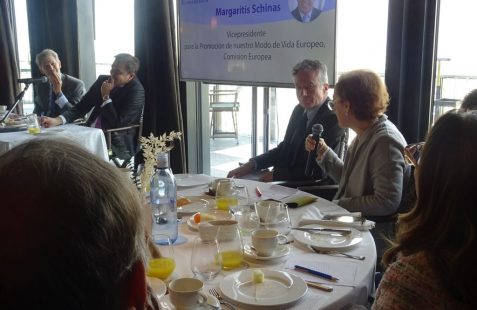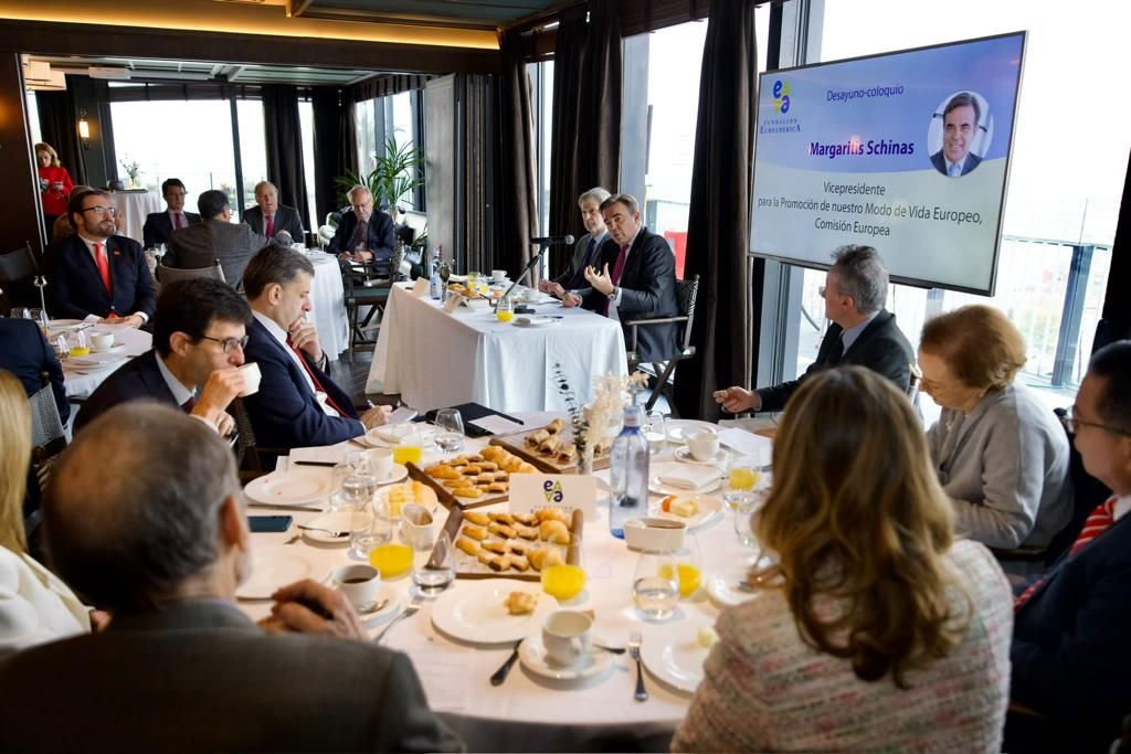 La Fundación recibió en un desayuno–coloquio al Vicepresidente de la Comisión Europea Margaritis Schinas, que comenzó su intervención explicando su papel en la Comisión como VP de la Promoción del Modo de Vida Europeo: Supone poner bajo el mismo techo dos tipos de políticas: la Europa que protege (migración, seguridad, sanidad) y la Europa de las oportunidades (educación, cultura, capacidades, Erasmus …)