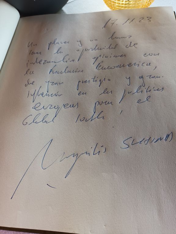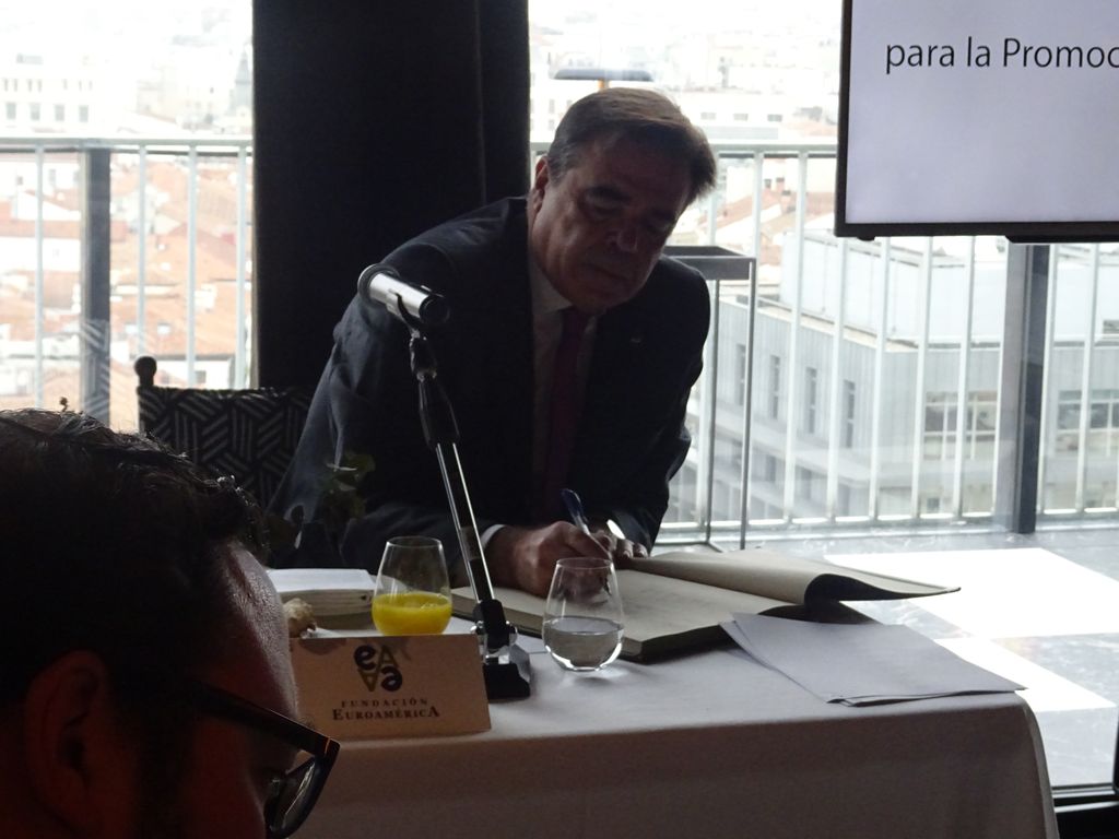 Tras su intervención comenzó el coloquio con los asistentes, tratándose varios temas como: la necesidad de tejer alianzas estratégicas con AL, la autonomía estratégica europea , la necesidad de reformar la industria europea en materias como chips etc., incrementar la seguridad europea, la ciberseguridad etc. el talento; Europa está en plena lucha por marcar terreno en su talento y a pesar de que no tenemos el inglés como única lengua, tenemos muchos puntos a favor como una educación de calidad, recursos para la formación profesional, movilidad organizada a través de la Plataforma “UE Talent Pool”, que sería necesario apoyar y promover.