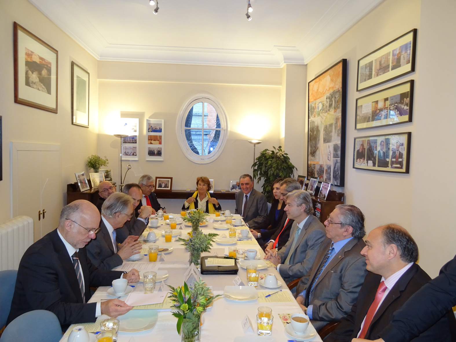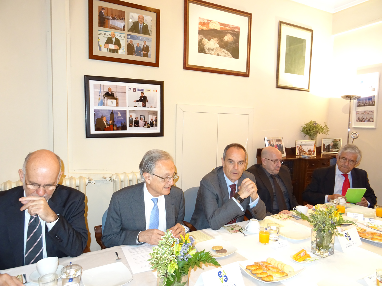 El Sr. Buisán, conocedor de la Fundación Euroamérica debido a su participación en dos de los Foros que celebramos anualmente en el continente americano (en Santiago de Chile -2005- y en Miami -2014-) comenzó su exposición destacando el papel clave del sector industrial dentro de la economía española y en su recuperación económica, resaltando que supone el 16% de su PIB, que genera 1,8 millones de empleos y que la mitad de las exportaciones españolas son bienes industriales. Indicó igualmente que desde el inicio de la crisis se ha producido un renacimiento de la política industrial, propiciada en gran parte por el entonces Comisario de Industria, Antonio Tajani, quien se marcó como objetivo que la política industrial supusiera el 20% del PIB europeo.