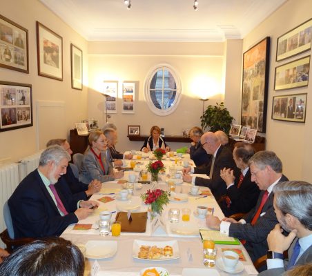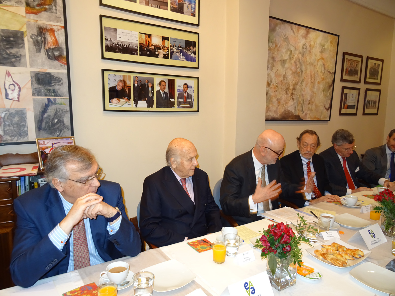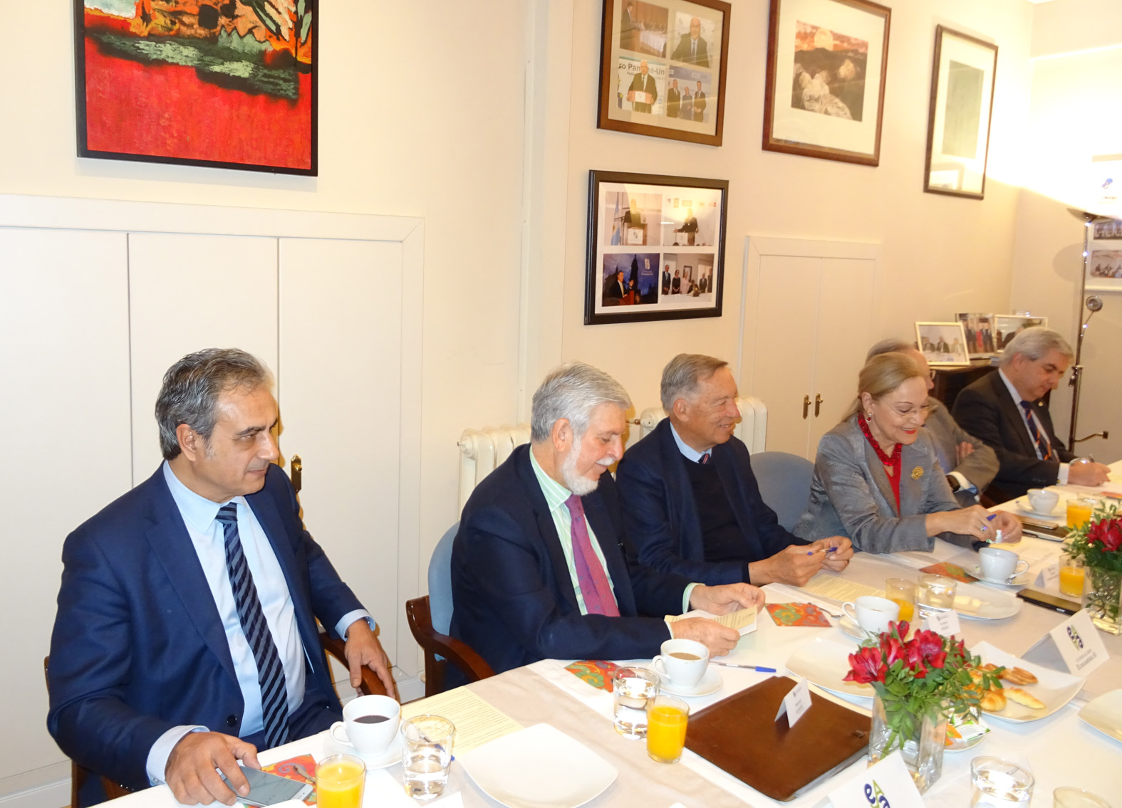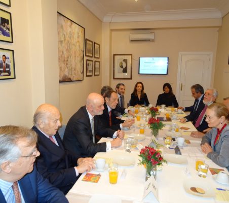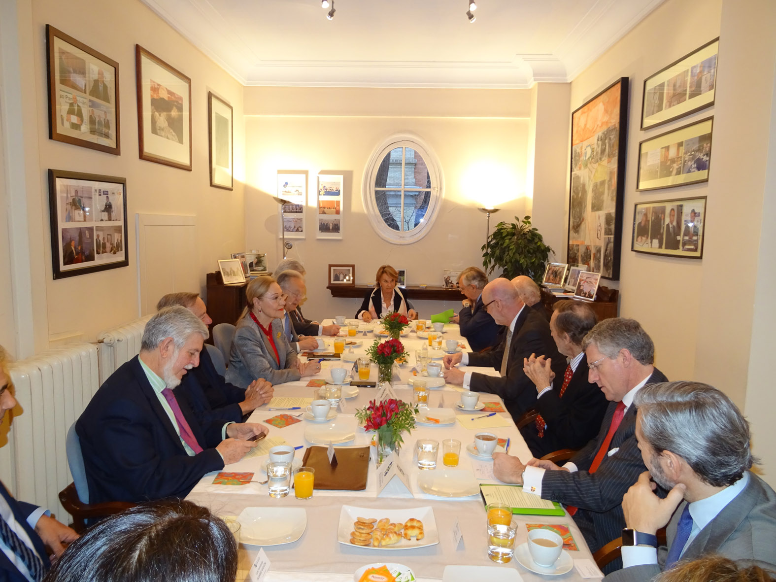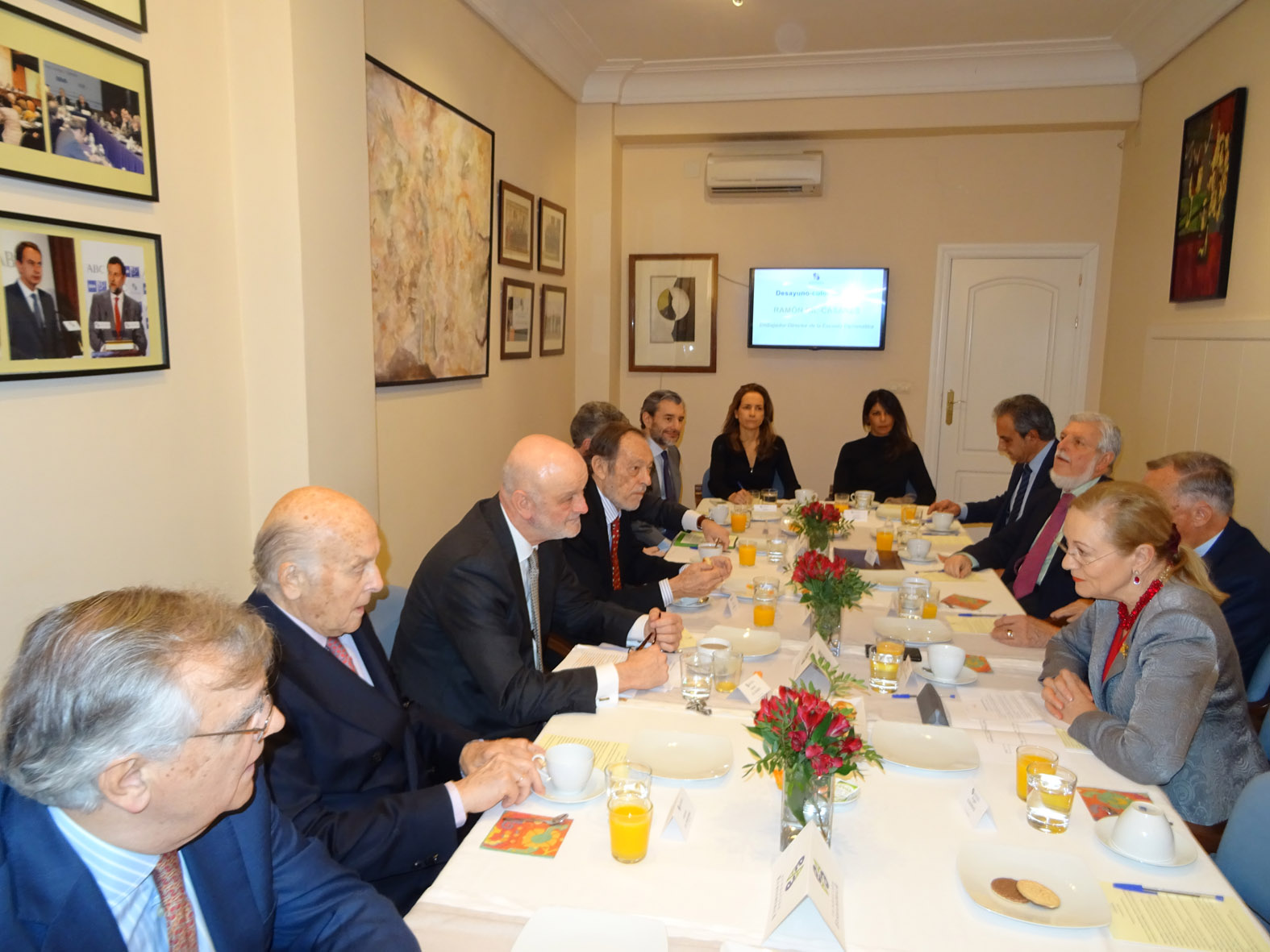 El desayuno comenzó con una interesante exposición por parte del Embajador-Director de la Escuela Diplomática del proceso selectivo y los requisitos necesarios para acceder a la Carrera Diplomática, destacando la función del diplomático como funcionario al servicio del Estado español. Dicho proceso se divide en dos fases. La primera de ellas consiste en una oposición que consta de cuatro ejercicios, que combinan parte oral y escrita e idiomas, y recogen una variada temática que incluye Derecho público y privado; Organizaciones Internacionales; Unión Europea; Economía general, internacional, española, y de la Unión Europea; Cooperación para el Desarrollo; Sociología; Historia; Relaciones Internacionales y Política Exterior.