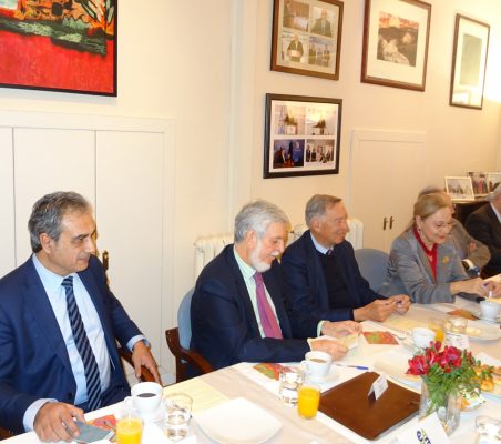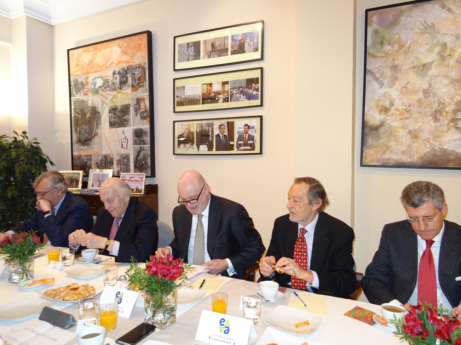 En el coloquio posterior con los asistentes al desayuno se trataron temas diversos como las alianzas y redes con las Escuelas Diplomáticas de los países de América Latina; la importancia de una formación permanente de los diplomáticos, así como de su conocimiento de los retos tecnológicos a los que nos enfrentamos y del papel de las redes sociales; la necesidad de incluir en la formación del cuerpo diplomático la comunicación y relaciones públicas como materia, ya que será su principal herramienta cuando estén en destinos en el exterior; la generalización versus especialización o la importancia del conocimiento de otros idiomas que no son los habituales, como el chino, el japonés o el árabe.
