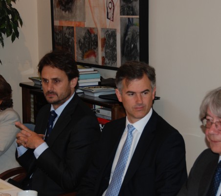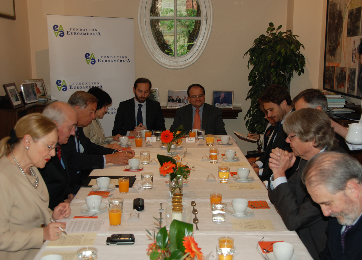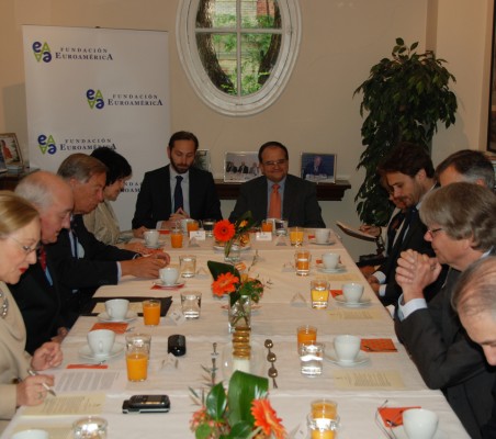 Ante una audiencia de quince invitados, el Embajador de Alemania comenzó su intervención que centró en dos temas: El paro juvenil y el enfoque de Alemania sobre el desarrollo de la Unión Europea. El paro juvenil, es un problema que está afectando de manera desigual a los países de la Unión Europea ya que en Alemania supone un 7,8% y en España asciende al 45%, y preocupa. Por ello, se están tomando medidas como la ampliación de capital del Banco Europeo de Inversiones que en parte se invertirá en la creación de empleo. Algunos Estados Miembros ya han flexibilizado el mercado de trabajo y España está afrontando ese proceso que debe de ir acompañado con reformas estructurales y que también se están acometiendo, aunque siga pendiente la de la Administración Pública. Hay que recordar que los efectos de estas reformas no son inmediatos ya que en Alemania estiman que se han notado sus resultados a los 5 años. Es necesario un plan de inversiones claro y saber donde, en que sectores se debe invertir. Destaca el Embajador el alto nivel de las infraestructuras españolas y por tanto la necesidad de centrarse en áreas como la Educación y la I+D cuyos presupuestos en contra de lo deseado se han reducido en España. En Alemania se está abordando el problema del paro juvenil conjuntamente por el Ministerio de Empleo y el de Educación, dándose especial relevancia a la Formación Profesional algo que se echa en falta en España. Se ha tomado la iniciativa de contratar a jóvenes españoles preparados, sobre todo ingenieros, y se estima que el año pasado unos 25.000 españoles buscaron trabajo en Alemania. No hay una gran solución para este problema pero si varias pequeñas iniciativas. Respecto del desarrollo de la Unión Europea, resalta el Embajador la importancia de fortalecer la Legitimación Democrática, quizás con una revisión y modificación de los tratados. Alemania quisiera desarrollar la Comisión Europea con un Ministro de Hacienda Europeo y planteándose la posibilidad también de un Ministro de Exteriores Europeo. Comenta el Embajador la dificultad que supone transferir más competencias a la Unión y que en el caso de Alemania supone pensar su viabilidad desde su Corte Constitucional y por ello quieren hacerlo en varias etapas y una vez unificados los tratados será cuando se planteen las transferencias. Estamos en un momento crucial de la Unión Europa, estamos hablando de los Estados Unidos Europeos y hay que ser conscientes de que varios estados miembros no nos van a acompañar. Será necesario un debate político para ver cuáles son los próximos pasos. En el coloquio en el que intervinieron todos los presentes, se plantearon algunas discrepancias con el Embajador en cuanto a la importancia de los Parlamentos Nacionales, la necesidad de avanzar ya en la unión bancaria y no retrasarla así como el necesario avance en definir como se utilizan los fondos de resolución para resolver algunas crisis y no esperar a la modificación de tratados. La existencia de sistemas financieros diferentes actualmente, supone una gran pega para las empresas. Por último, Regina Revilla, presidenta de ASEBIO, ofrece al Sr. Embajador concederle el Master de Oro del Forum Alta Dirección que ya ostenta la presidenta de la Fundación Benita Ferrero-Waldner y la propia Revilla. |