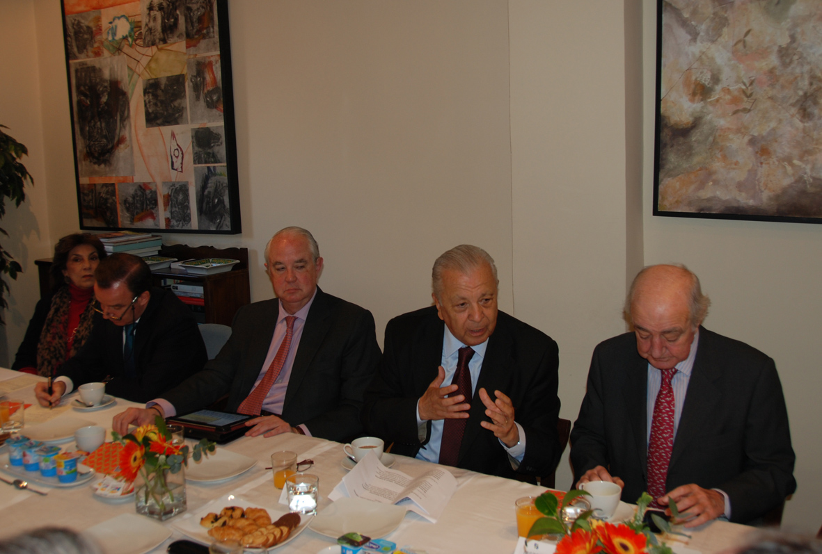 El 13 de marzo la Fundación Euroamérica recibió en su sede al Embajador de Chile en España, D. Sergio Romero Pizarro, en uno de sus desayunos habituales. Ante una audiencia de 15 personas el Embajador comentó las conclusiones del informe de la OCDE y PW&C, , en virtud de los cuales se prevé que para el año 2050, los principales actores económicos mundiales serían China e India (actualmente representan un 17% y 7% respectivamente de la economía mundial, pasando a representar un 28% y 18%), mientras que Europa, perderá peso pasando del 17% actual de su economía en el PIB mundial al 12%. En este sentido, el embajador apuntó que el gran patrimonio que tienen esos dos países emergentes es la población y la gran demanda que generan. En el turno de intervenciones se puntualizó que para que estas predicciones se cumplan, es necesario que las constantes actuales sobre las cuales los economistas las realizan, se mantengan en el futuro, lo cual no hay certeza de que vaya a producirse. También la Presidenta de la Fundación Euroamérica, Benita Ferrero-Waldner, apuntó la importancia y consecuencias en el comercio mundial que puede tener el próximo TLC que firmarán la UE y Estados Unidos. El Embajador apuntó que una de las principales medidas sugeridas por la OCDE para mejorar las perspectivas económicas es la internacionalización de las empresas, sobre todo de las PYMES. No sólo América Latina supone en sí misma una gran oportunidad para el asentamiento de estas PYMES-no en vano la región ha experimentado en los últimos años un crecimiento sostenido, superior al europeo- sino que además se beneficiaría por la transferencia de tecnología e i+d que ello supondría Y además AL puede convertirse en un puente natural de las empresas europeas que quieran instalarse en el Pacífico. En este sentido habló del notable éxito que está experimentando la Alianza del Pacífico, cuyos miembros comparten principios y valores y, sobre todo, seguridad jurídica, fundamental en las relaciones comerciales con otros países. El Embajador apuntó que la Unión Europea debería abandonar algunas medidas de carácter proteccionista que viene adoptando en los últimos años. En este sentido defendió el modelo de liberalismo económico de Chile que ha sido compartido conceptualmente en los últimos años por toda la clase política, independientemente del partido que estuviera gobernando, lo que ha facilitado sin duda su crecimiento y estabilidad. Asimismo apuntó la reducción de la brecha de desigualdad y de pobreza que ha experimentado Chile en los últimos tiempos, reconociendo que aún queda mucho por hacer en este tema de gran importancia. Por último hizo hincapié en el equilibrio fiscal que desde años sostienen, así como de las reservas que poseen (ahorro con el aumento del precio del cobre) En el coloquio posterior se apuntó que el reto de las relaciones entre América Latina y Europa está en el intercambio de talento, de profesionales y en educación. Todos los asistentes coincidieron en la gran estabilidad que hay en todos los sentidos en Chile, país que ofrece unas perfectas condiciones, tanto para vivir, como para invertir . Lo único que podrían reprochar al país es la poca facilidad para las empresas a la hora de conseguir garantías y avales de la banca chilena y el problema de la convalidación de los títulos de los profesionales españoles que se trasladaban allí. El Embajador insistió en el liberalismo chileno, poniendo varios ejemplos de ello, entre los cuales apuntó que a través de la alianza estratégica con Europa se solucionará la problemática actual de homologación de los títulos. |
