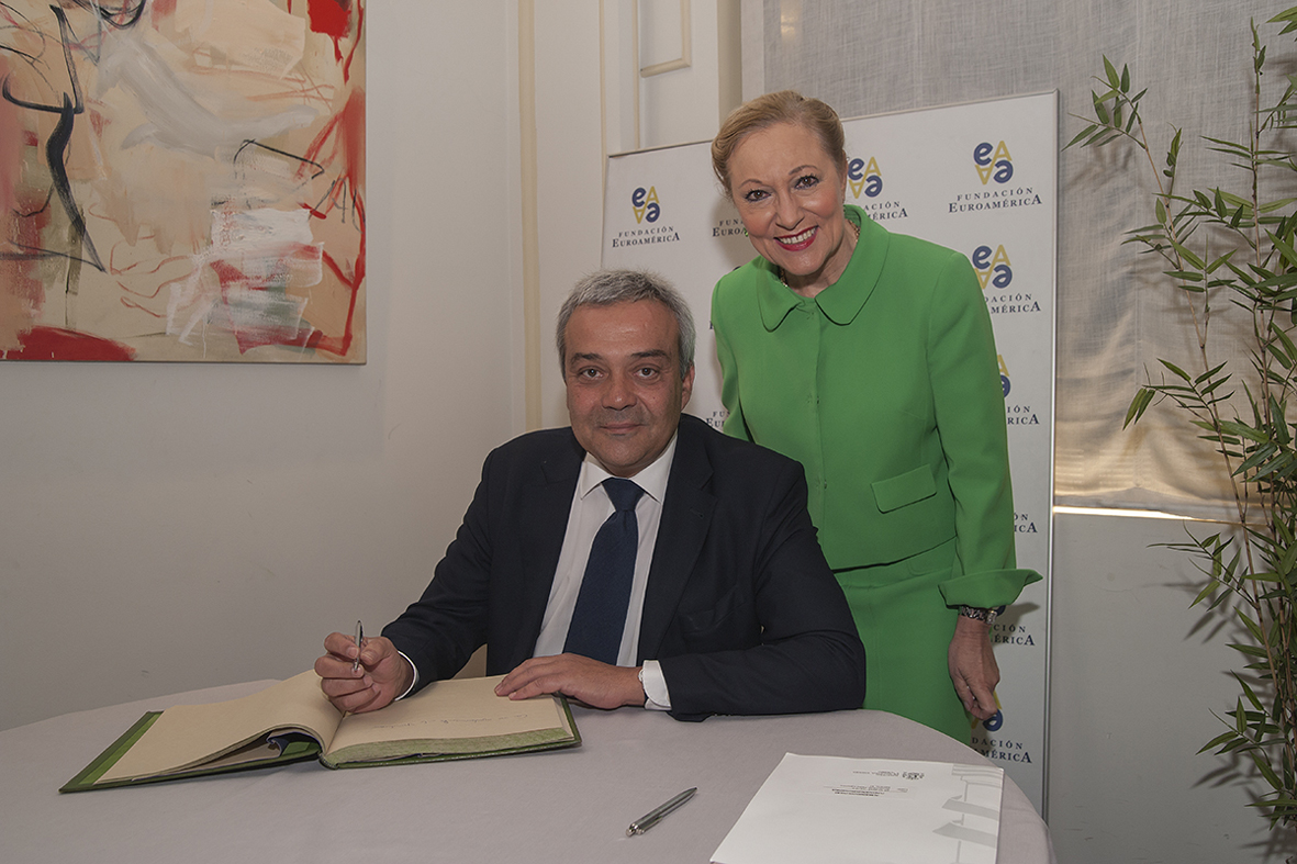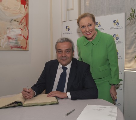 El Secretario de Estado de Telecomunicaciones y para la Sociedad de la Información, Victor Calvo-Sotelo, en el almuerzo organizado por la Fundación Euroamérica y patrocinado por la SGAE, centró su intervención en la importancia de la tecnología en el desarrollo regional. Recordó, asimismo, el salto tecnológico que había observado en su reciente viaje a Colombia que coincide con el que, a nivel general, se ha producido en otros países vecinos. Con posterioridad al almuerzo, y como es habitual, se generó un interesante coloquio con los invitados. |