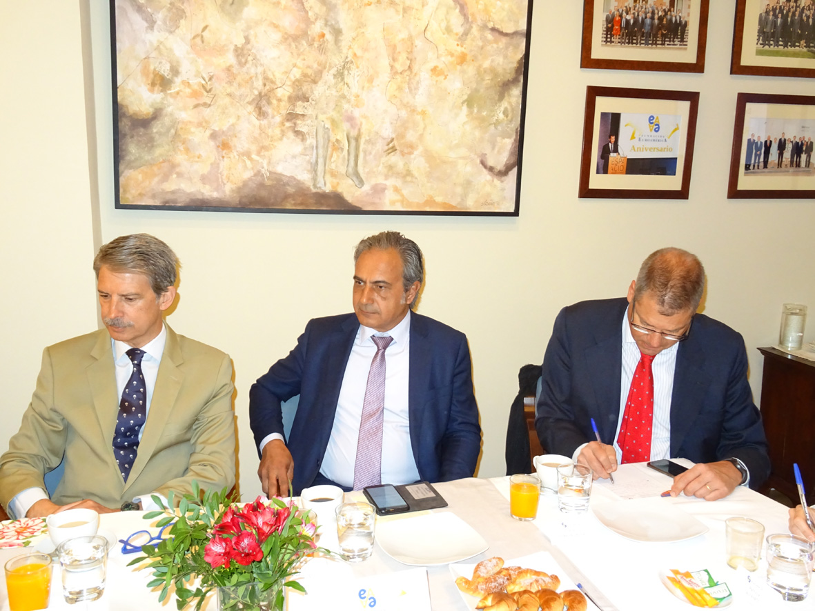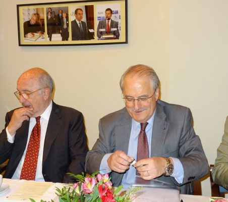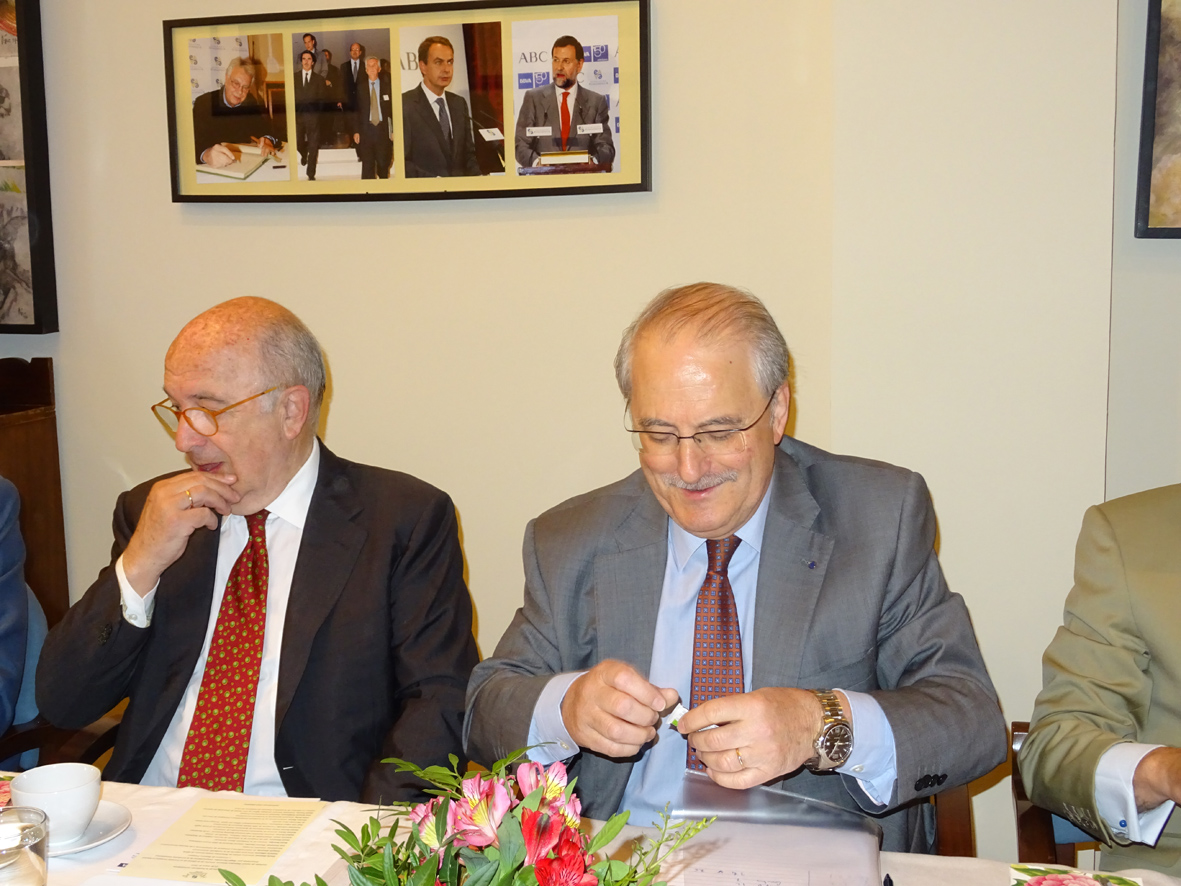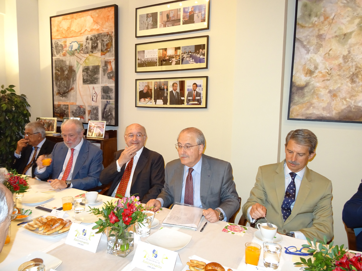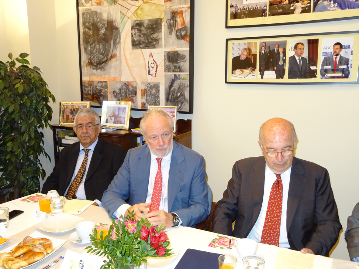 A sólo tres días de las elecciones en España al Parlamento Europeo celebramos un desayuno en nuestra sede en el que contamos, además de con Francisco Fonseca como invitado de honor, con dos invitados de excepción por la temática que se trataba, el ex Vicepresidente de la Comisión Europea y ex Comisario de Competencia, y de Asuntos Monetarios y Económicos, Joaquín Almunia, y José Ignacio Salafranca, candidato a Diputado al Parlamento Europeo y con enorme experiencia en las instituciones europeas.