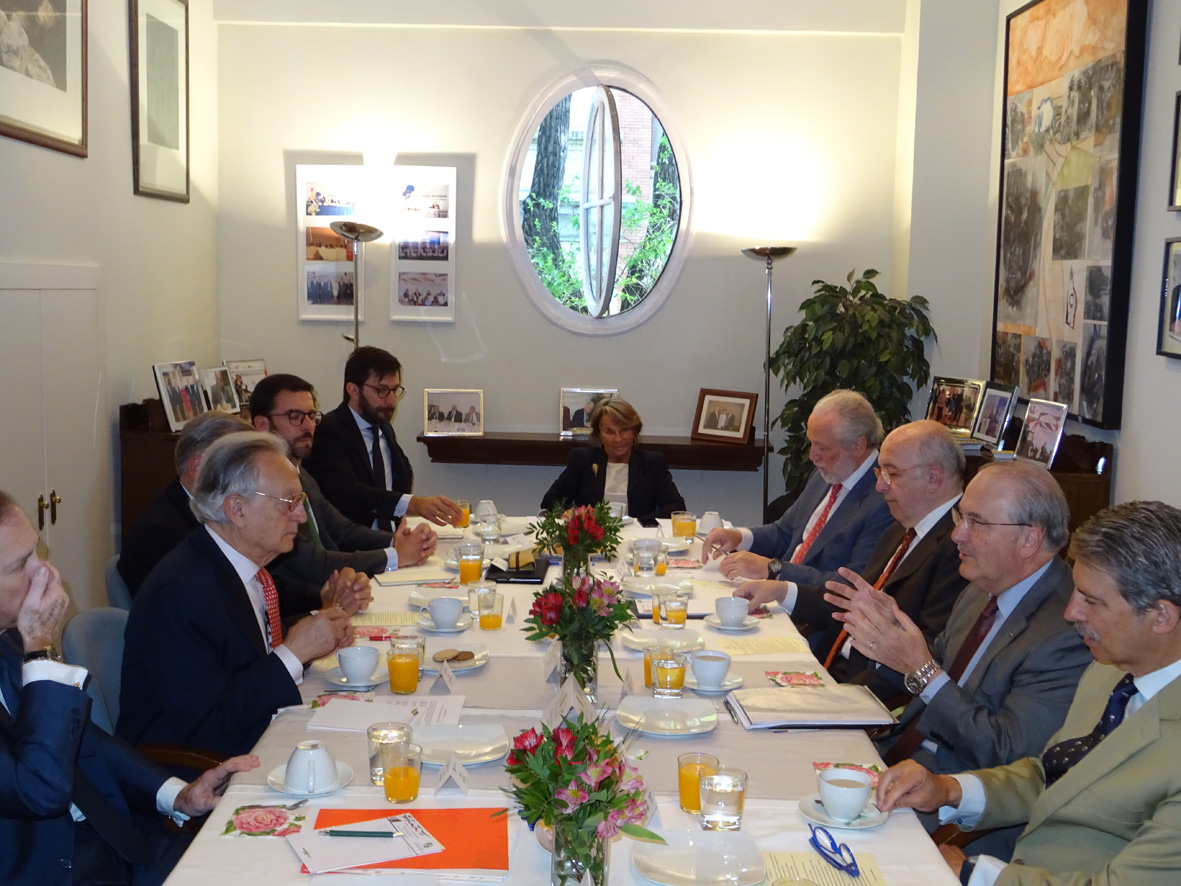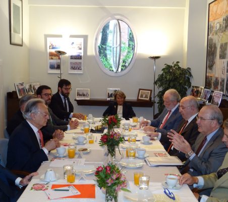 También se habló durante el desayuno del procedimiento habitual para la elección de los representantes de las cinco instituciones europeas más relevantes: Comisión Europea, Parlamento Europeo, Consejo Europeo, Banco Central Europeo y Alto Representante de la Unión para Asuntos Exteriores y Política de Seguridad. En este sentido, y además de revelarnos las dificultades que pueden surgir a la luz de la nueva composición del Parlamento Europeo, se indicó las dos condiciones de equilibrio que han de que cumplirse y que son la de género y la geográfica.