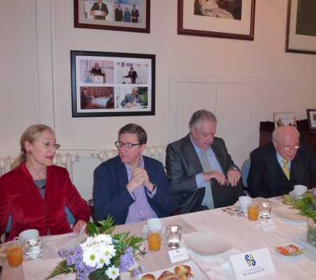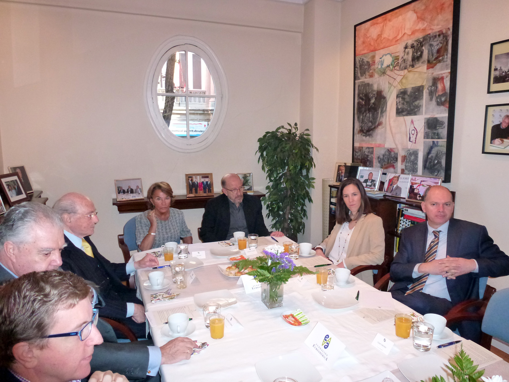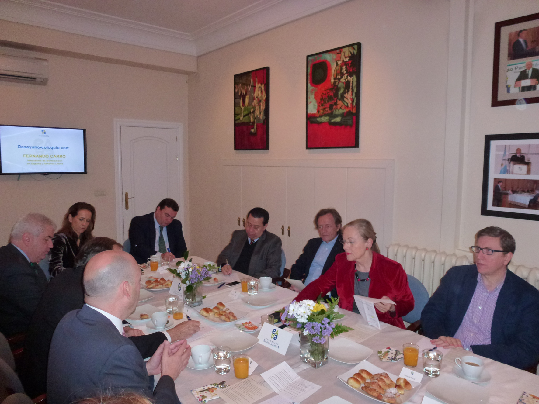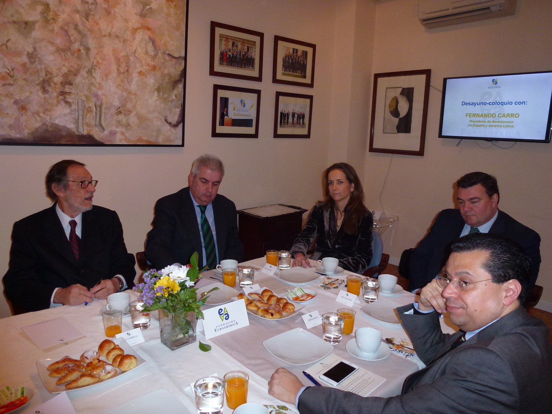 Bajo el título ‘La gran transformación del primer grupo empresarial de medios de comunicación de Europa’, Fernando Carro comenzó su intervención hablando del asentamiento de la educación dual en la sociedad alemana, así como la importancia de tener una experiencia de formación y profesional en el extranjero y de potenciar el talento joven. Bajo estas premisas, ha introducido en Bertelsmann un proyecto en España para crear este talento joven e integrarlo en la empresa. Tras esta introducción, indicó como objetivo de su grupo un mayor crecimiento, apostando por la internacionalización y la digitalización, estableciendo 4 líneas principales: la inversión en mercados fuera de Europa, como Estados Unidos, China, India o Brasil; la inversión en nuevos negocios, como la educación; la transformación digital de sus negocios más tradicionales y un mayor posicionamiento en negocios claves. Sostiene como tres grandes pilares de Bertelsmann: los contenidos (televisión, libros, revistas, música), los servicios y la educación, poniendo el énfasis en lo digital. Precisamente en la educación destacó tres grandes mercados: la formación en las empresas; la universidad, sobre todo en temas de salud y los servicios educativos o servicios informáticos. Concluyó su exposición con la estrategia del grupo en Latinoamérica, destacando la importancia de Brasil en materia de educación y enfatizando la importancia que tiene y debe seguir teniendo el idioma español en esta área. A continuación se estableció un interesante debate entre los asistentes y el invitado de honor en el que se trataron diversos temas como el reto en España, en materia de educación, de un mayor impacto de las nuevas tecnologías, así como la necesidad de compaginar los estudios con una formación práctica en las empresas; la Agenda Cultural Digital tras la Cumbre de Veracruz; la necesidad de luchar contra la piratería en los contenidos digitales o la gran oportunidad que suponen las empresas tecnológicas para nuevos creadores y para los usuarios. |