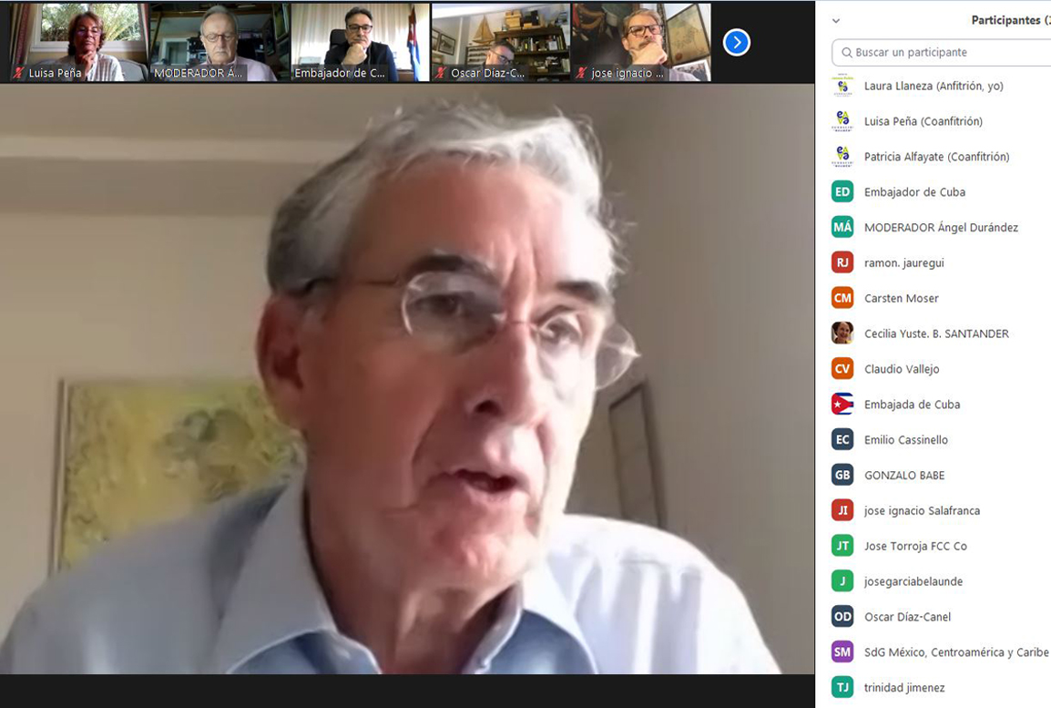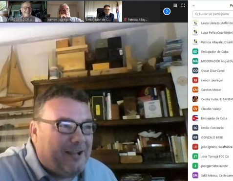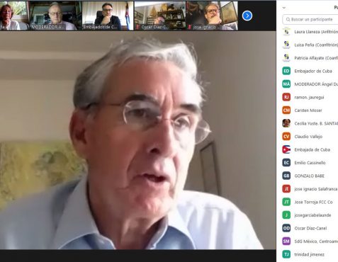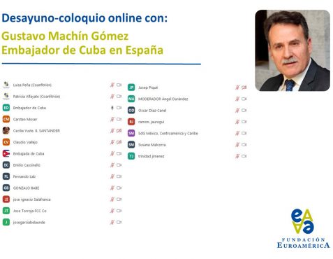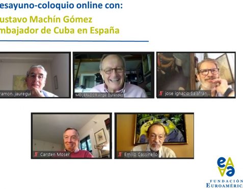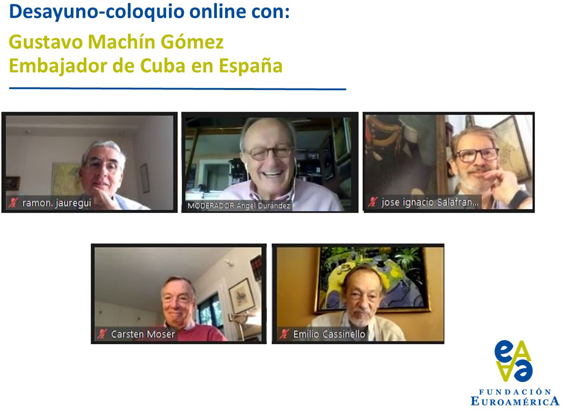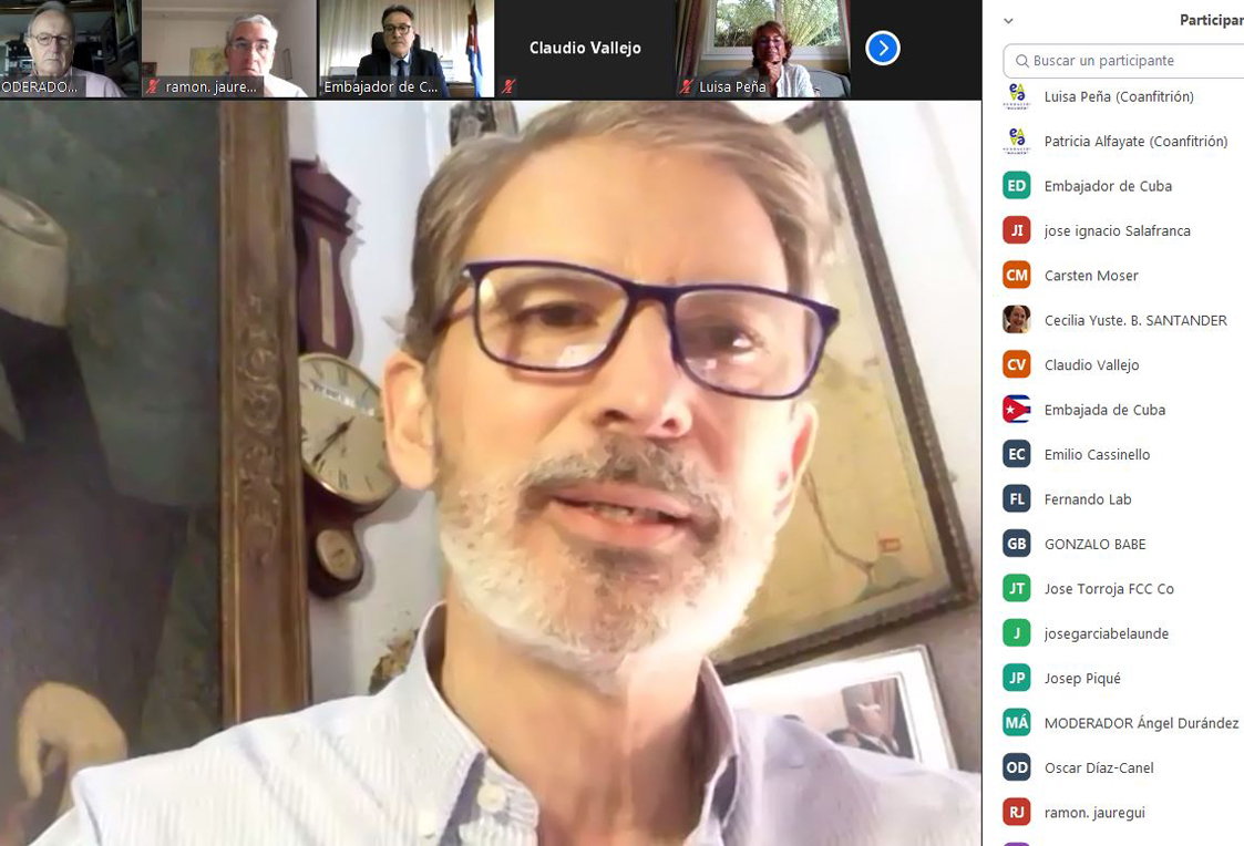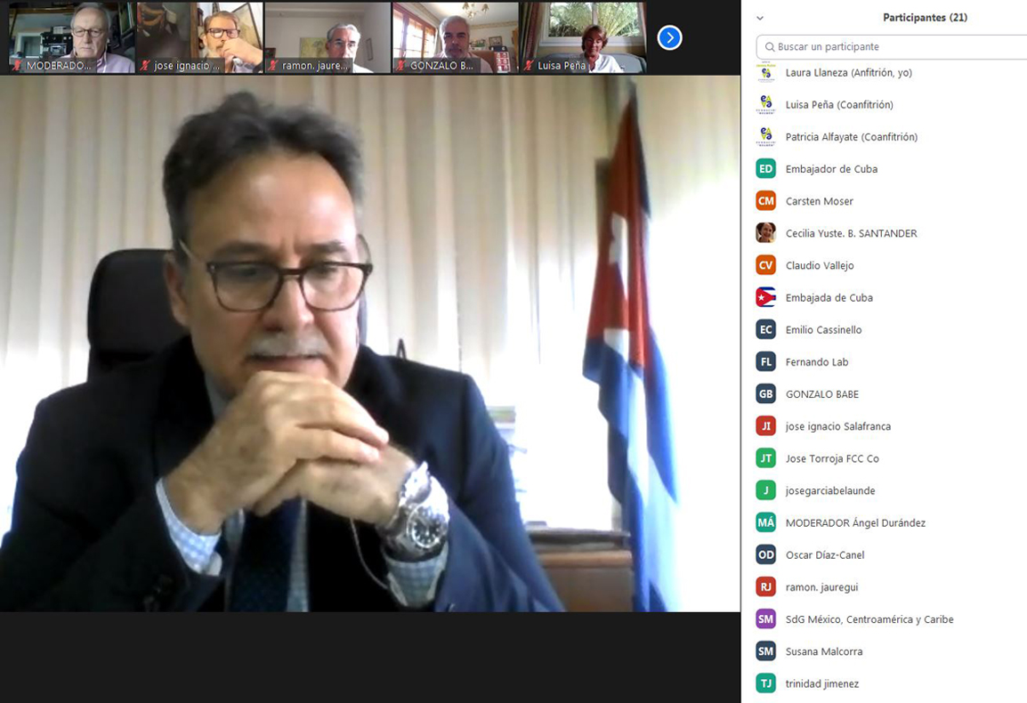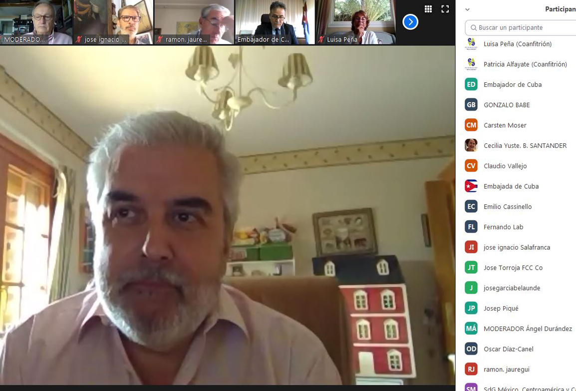 Comienza sus palabras el Embajador Machín comentando los cambios internos sufridos por su país en los últimos años y en concreto desde 2010, año en el que después de un amplio debate popular se modificaron el ordenamiento político administrativo y los alineamientos de políticas sociales y económicas. Todo este proceso culminó con la nueva Constitución aprobada en febrero 2019 por la que se cambian enfoques económicos y sociales; se modifica la estructura política del país contando ahora con un Presidente y un Primer Ministro, se refuerzan los municipios en un proceso de descentralización, se reconoce las nuevas formas de propiedad y de producción etc. El embajador define esta nueva Constitución como flexible y renovadora. Cuba es un país en transformación, concluye.