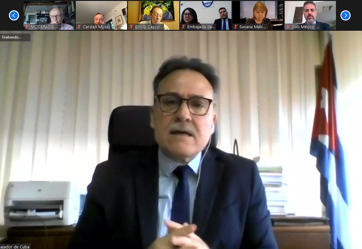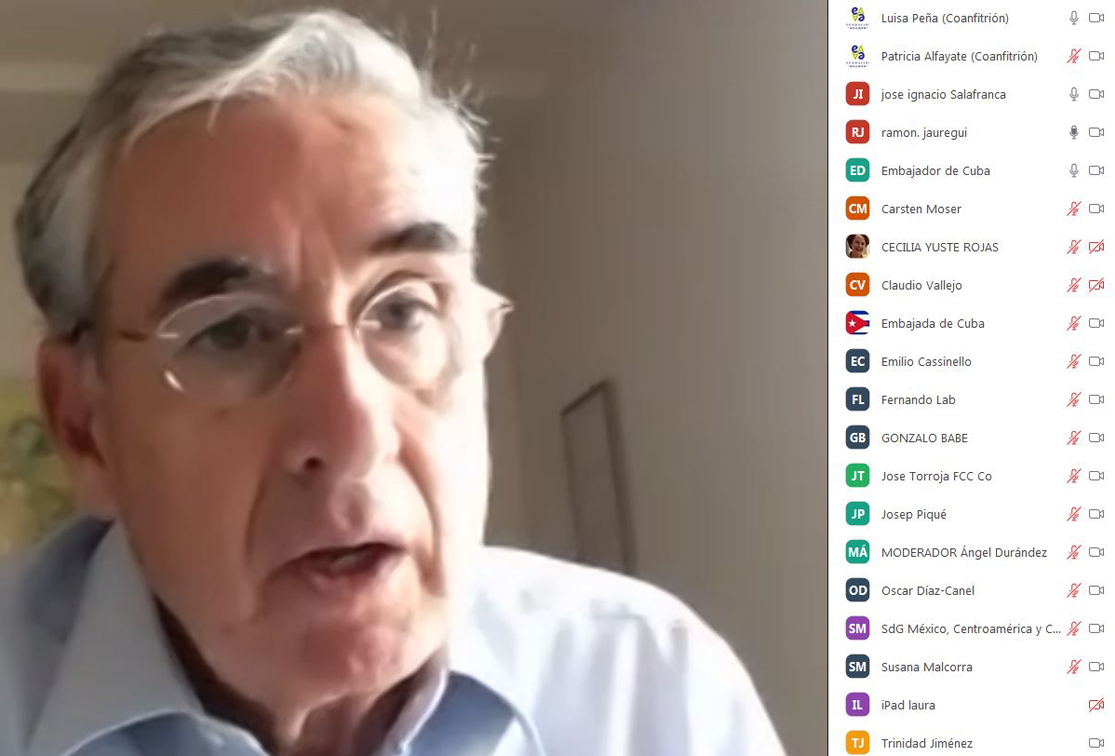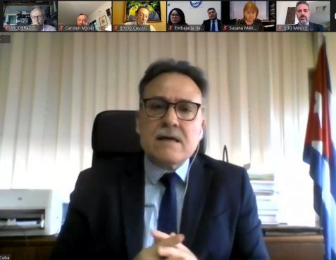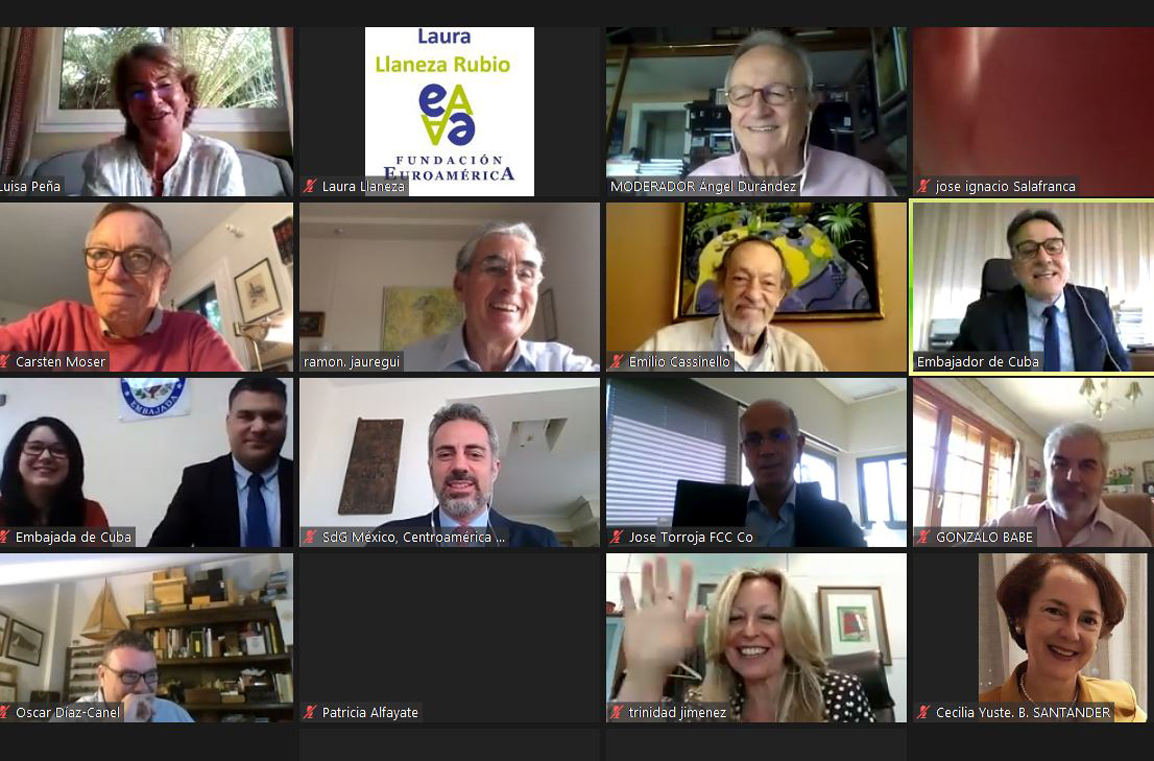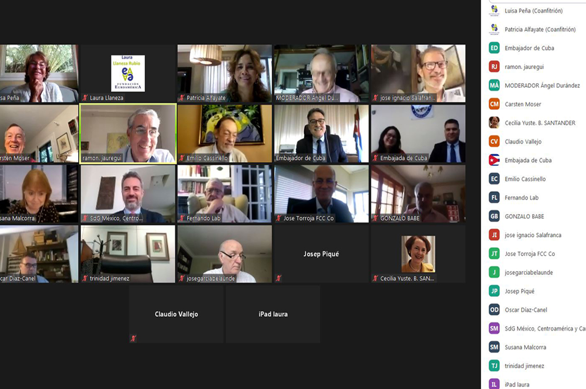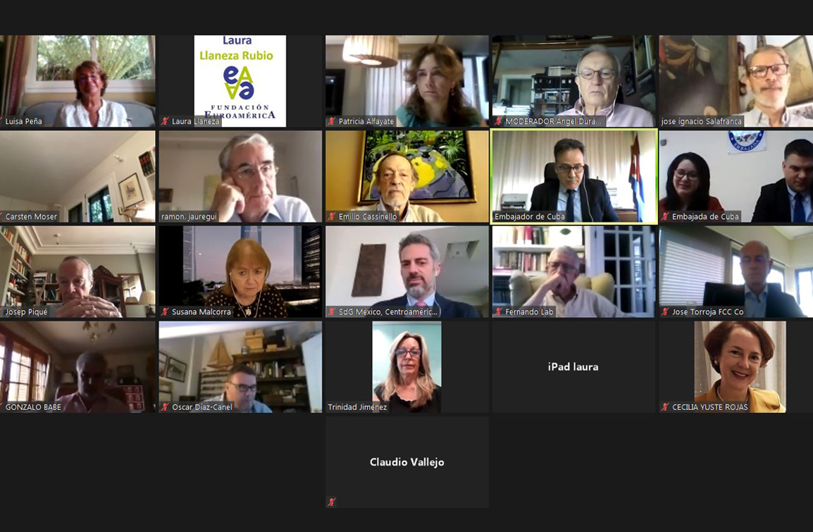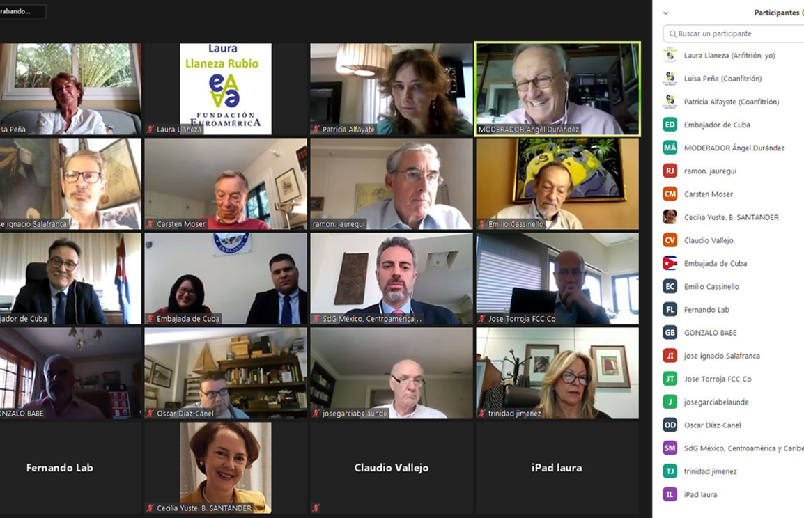 Comienza sus palabras el Embajador Machín comentando los cambios internos sufridos por su país en los últimos años y en concreto desde 2010, año en el que después de un amplio debate popular se modificaron el ordenamiento político administrativo y los alineamientos de políticas sociales y económicas. Todo este proceso culminó con la nueva Constitución aprobada en febrero 2019 por la que se cambian enfoques económicos y sociales; se modifica la estructura política del país contando ahora con un Presidente y un Primer Ministro, se refuerzan los municipios en un proceso de descentralización, se reconoce las nuevas formas de propiedad y de producción etc. El embajador define esta nueva Constitución como flexible y renovadora. Cuba es un país en transformación, concluye.