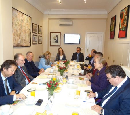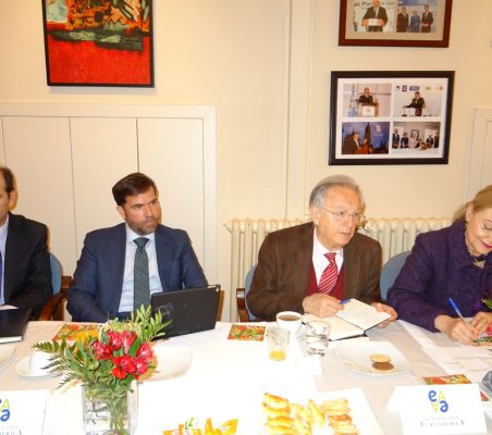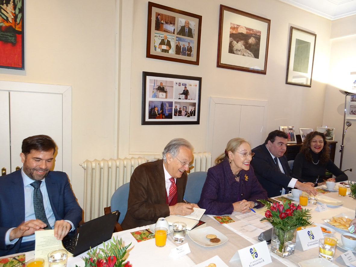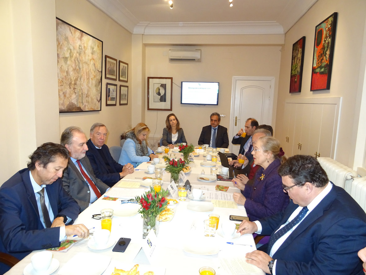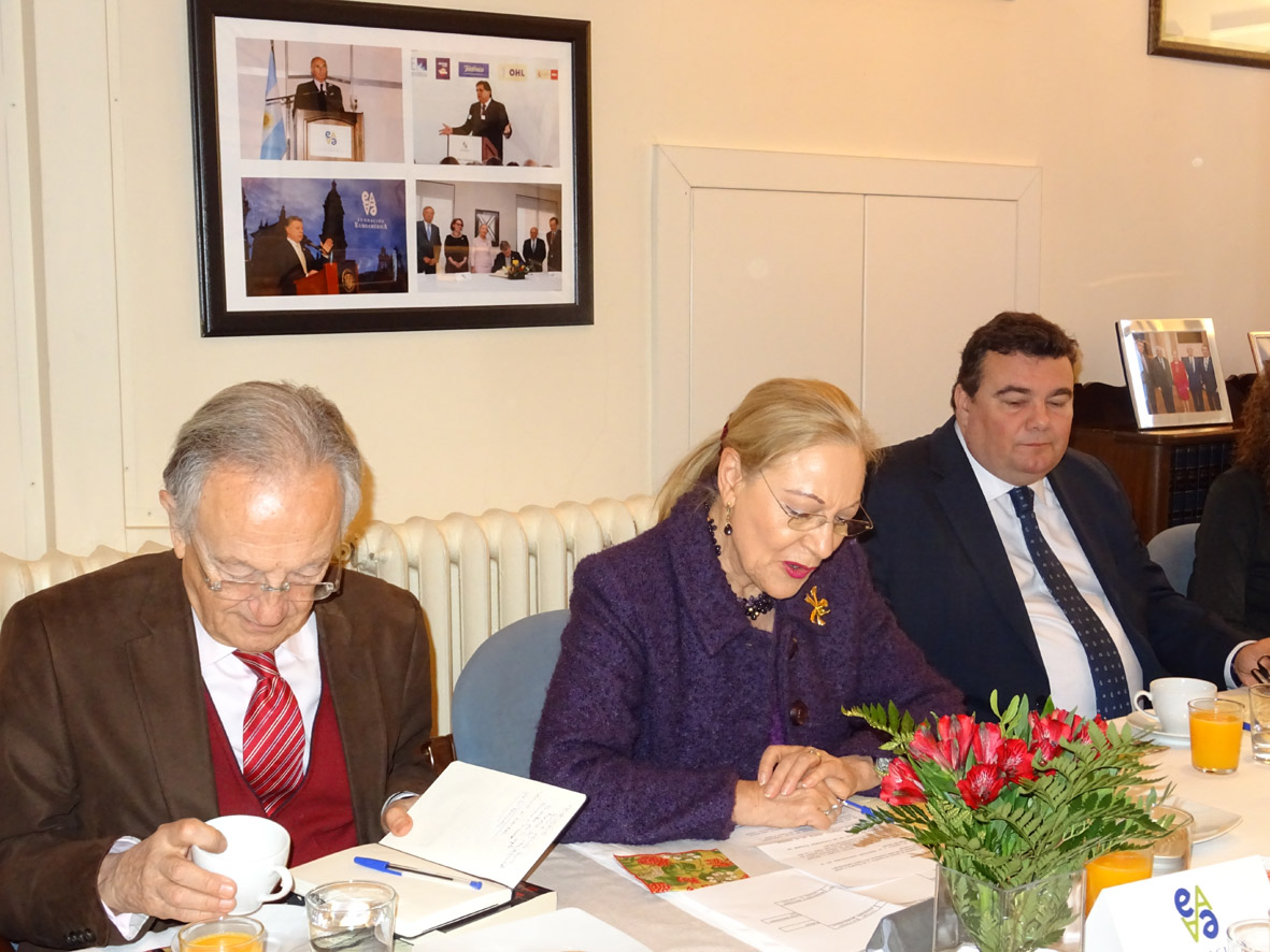 José María Beneyto habló a continuación de las relaciones de Estados Unidos y la Unión Europea con América Latina. Por un lado, habló del creciente proteccionismo del gobierno del Presidente Trump que, unido a la ausencia de una política estadounidense clara en relación a América Latina (basada casi exclusivamente en tres temas: México, Cuba y Venezuela), han dejado comercialmente el camino abierto en esa zona, lo que está siendo aprovechado por China. Y por otro, comentó la posición de la Unión Europea, con 650.000 millones de euros de stock en la región y dos grandes procesos comerciales en negociación, con Mercosur por un lado y la modernización del ya existente con México, por otro; ambos con posibilidades de firmarse en breve, lo que reforzaría las relaciones con América Latina. Sin embargo indicó igualmente el escaso debate político que dé una mayor visibilidad a la futura estrategia de la UE con respecto a Latinoamérica.