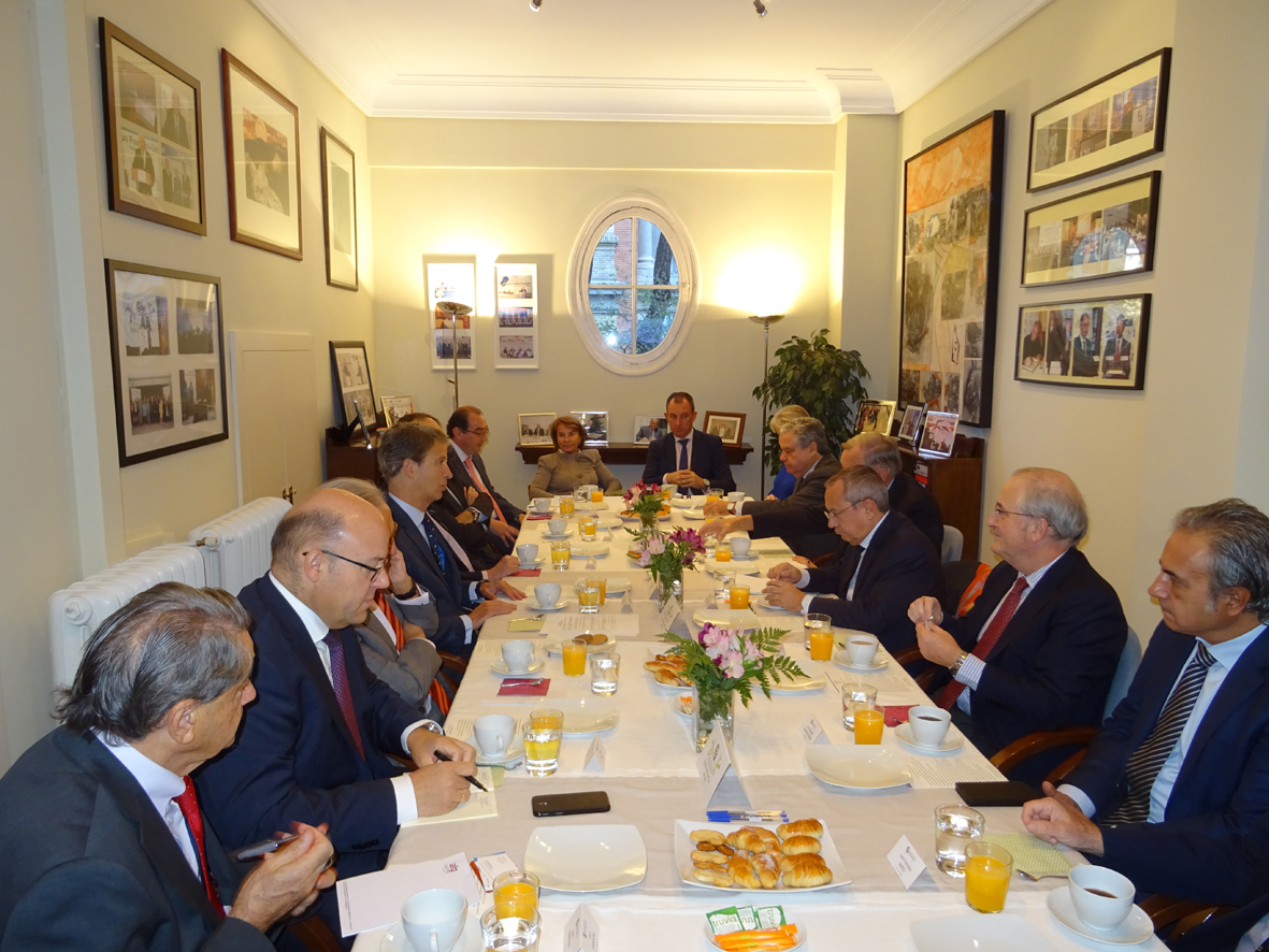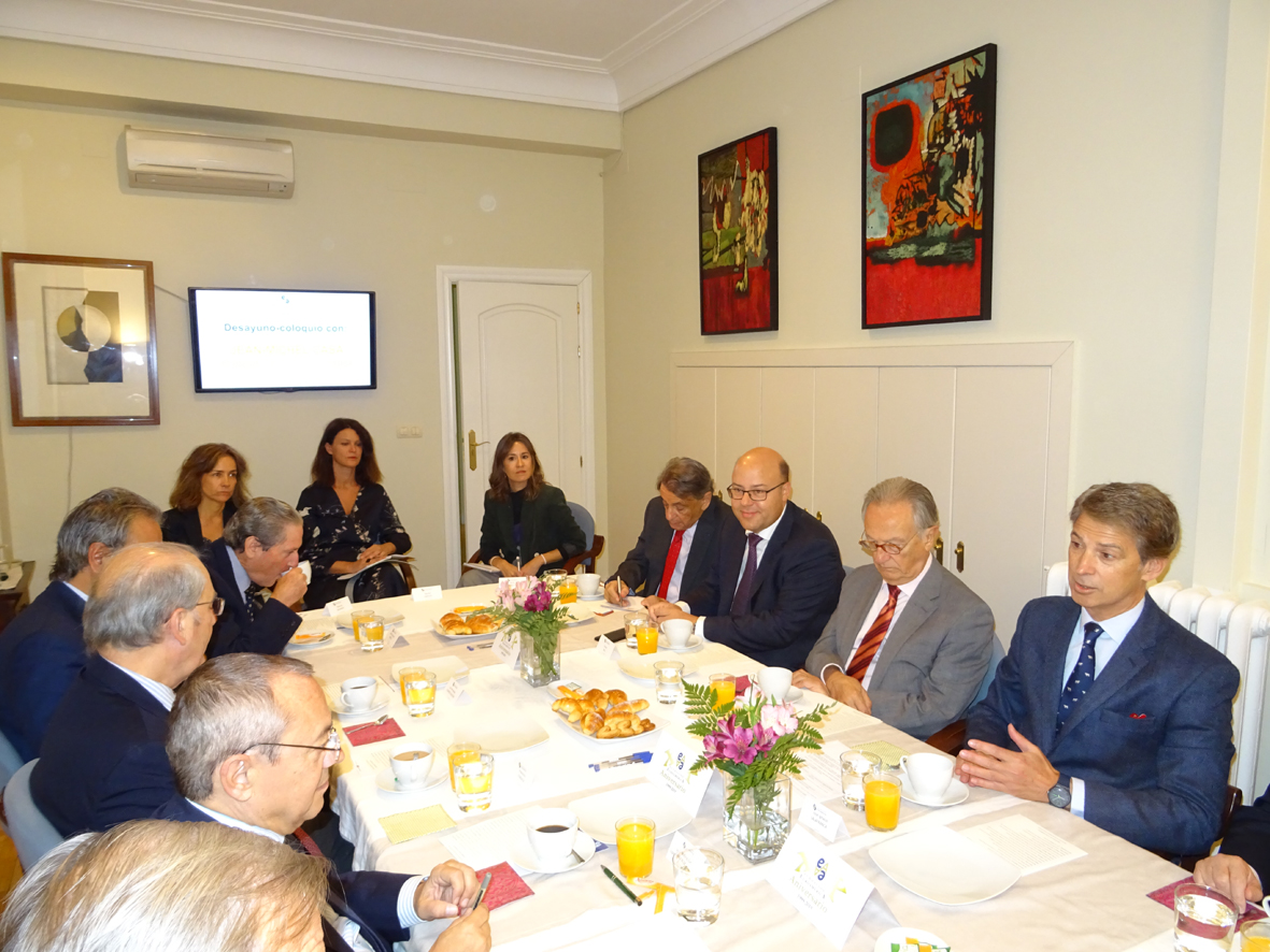 El Embajador francés fue el nuevo invitado de honor de uno de nuestros desayunos-coloquios tras seis meses de haber tomado posesión de su cargo. Comenzó haciendo un balance de la actual situación de la UE, en pleno proceso de renovación en sus instituciones y destacando la entrada de nuevos partidos políticos que han supuesto el fin del bipartidismo PPE-PSE. Los nuevos Presidentes de la Comisión, Parlamento, Consejo Europeos y del BCE traerán consigo una nueva dinámica. Mención especial hizo del nuevo Alto Representante de la Unión, Josep Borrell, quien implementará una nueva Agenda Estratégica Europea y, en sus responsabilidades del servicio exterior y la política de seguridad, tendrá que impulsar temas globales como la lucha contra el cambio climático, desarrollo, migraciones o la defensa europea.