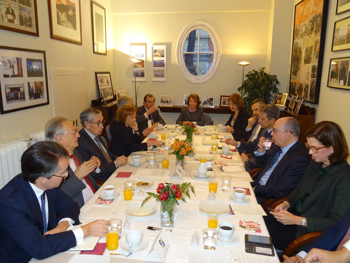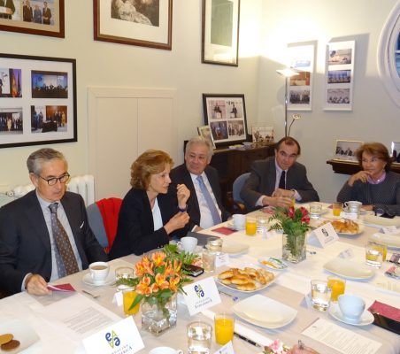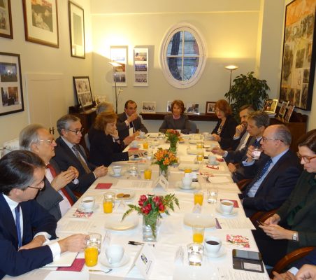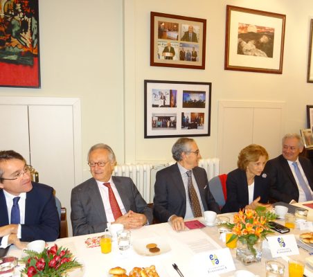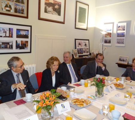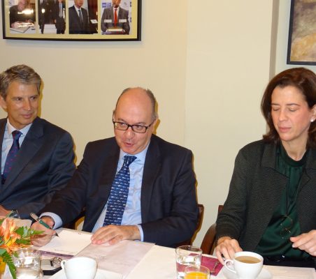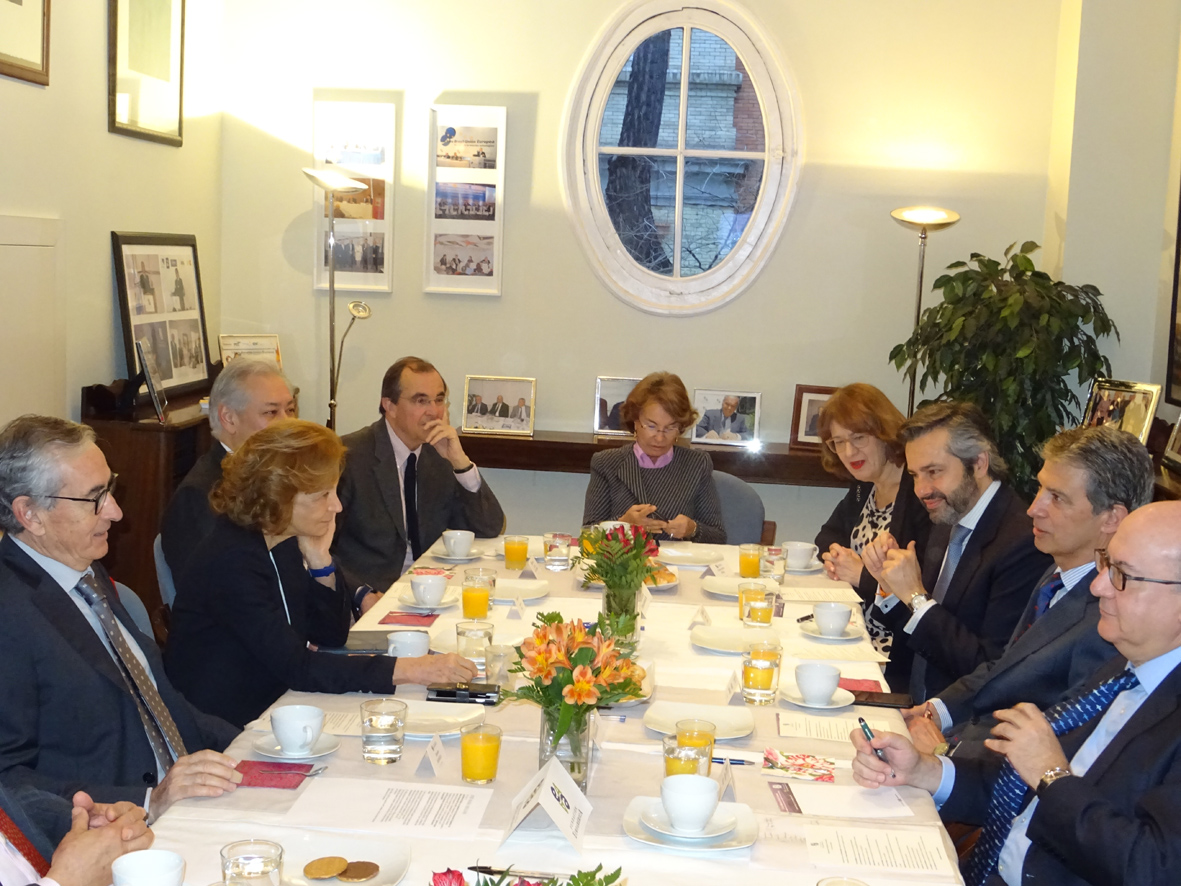 El Presidente de la AEB, José María Roldán, fue el nuevo invitado de honor de nuestros desayunos-coloquio. En una brillante intervención inicial comenzó indicando que la complicada situación política, con un arco parlamentario más diverso que nunca, obligaba al sector bancario a replantearse su operativa. Desde el punto de vista económico, destacó el momento cíclico de crecimiento blando por el que está atravesando, no sólo la economía española, si no la europea en general. Esta desaceleración en la economía, junto a las expectativas del BCE de mantenimiento en el medio-largo plazo de unos tipos de interés negativos, crean un entorno muy complejo del sistema bancario.