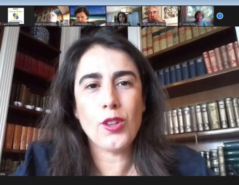 Después de las palabras de introducción y presentación del presidente Jáuregui, resaltando la gran labor y la importante cartera que gestiona la Sra. Butkeviciene como Directora para América Latina y el Caribe en la Dirección General de Cooperación y Desarrollo de la Comisión Europea, da comienzo a su intervención centrándose en las perspectivas de la cooperación entre la UE y América Latina en este momento de crisis, tan complejo y con tanta incertidumbre, expresando el interés de la UE de elevar el nivel de esta relación y cooperación. “La relación entre ambos no puede entenderse como un ente aislado; la cooperación, el diálogo, han sido un motor fundamental para el multilateralismo global y han estado detrás de grandes logros como el acuerdo de París o la Agenda 2030”. “Esta cooperación siempre ha sido un banco de pruebas, un modelo para analizar los límites de las estructuras de cooperación”. A las puertas del nuevo Marco Financiero Plurianual, “se plantea un cambio estructural en nuestra forma de cooperación con los países-socios y el papel de Latinoamérica será de nuevo clave en este diseño”. “El multilateralismo no está roto, solamente hay que reinventarlo y con Latinoamérica está más preparado ahora para responder a la crisis que hace 7 años. Entonces se veía la región dividida entre países pobres y ricos, pero hoy los visualizamos como países-socios y podemos profundizar en nuestra cooperación regional sobre agendas comunes y bienes públicos”. “Los objetivos de la agenda 2030, supusieron un cambio hacia una visión multidimensional de los procesos de desarrollo y los retos pasan a ser compartidos y las realidades descritas por índices más complejos. Si tenemos una visión más amplia, tenemos que ampliar también la forma de relacionarnos y en la que cooperamos; hay que revisar y analizar si los instrumentos de cooperación corresponden a esta realidad y si son capaces de dar respuestas que se ajustan a realidades más complejas, más ambiciosas”.