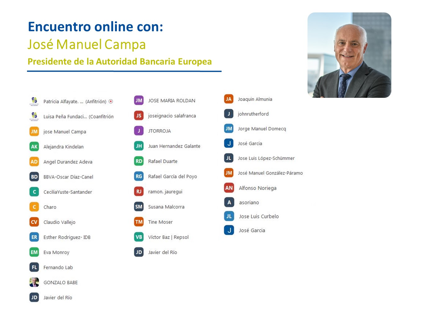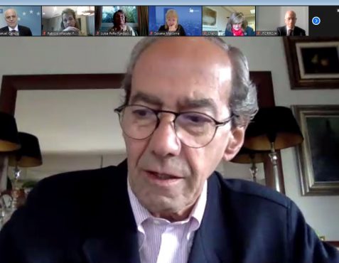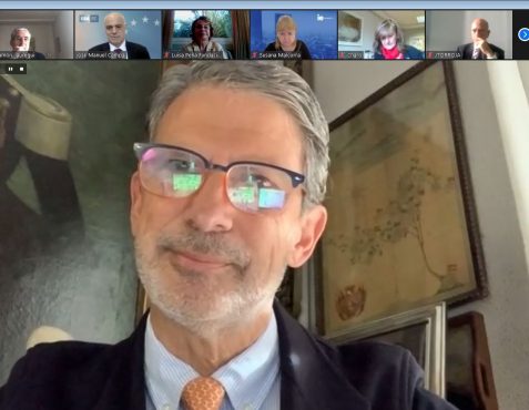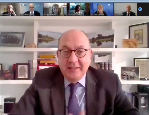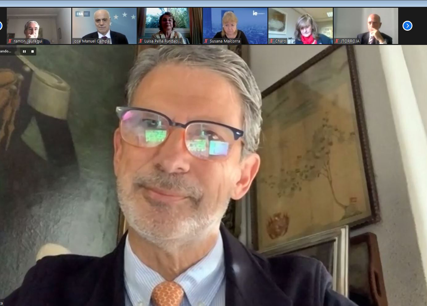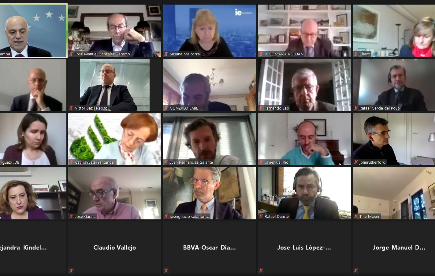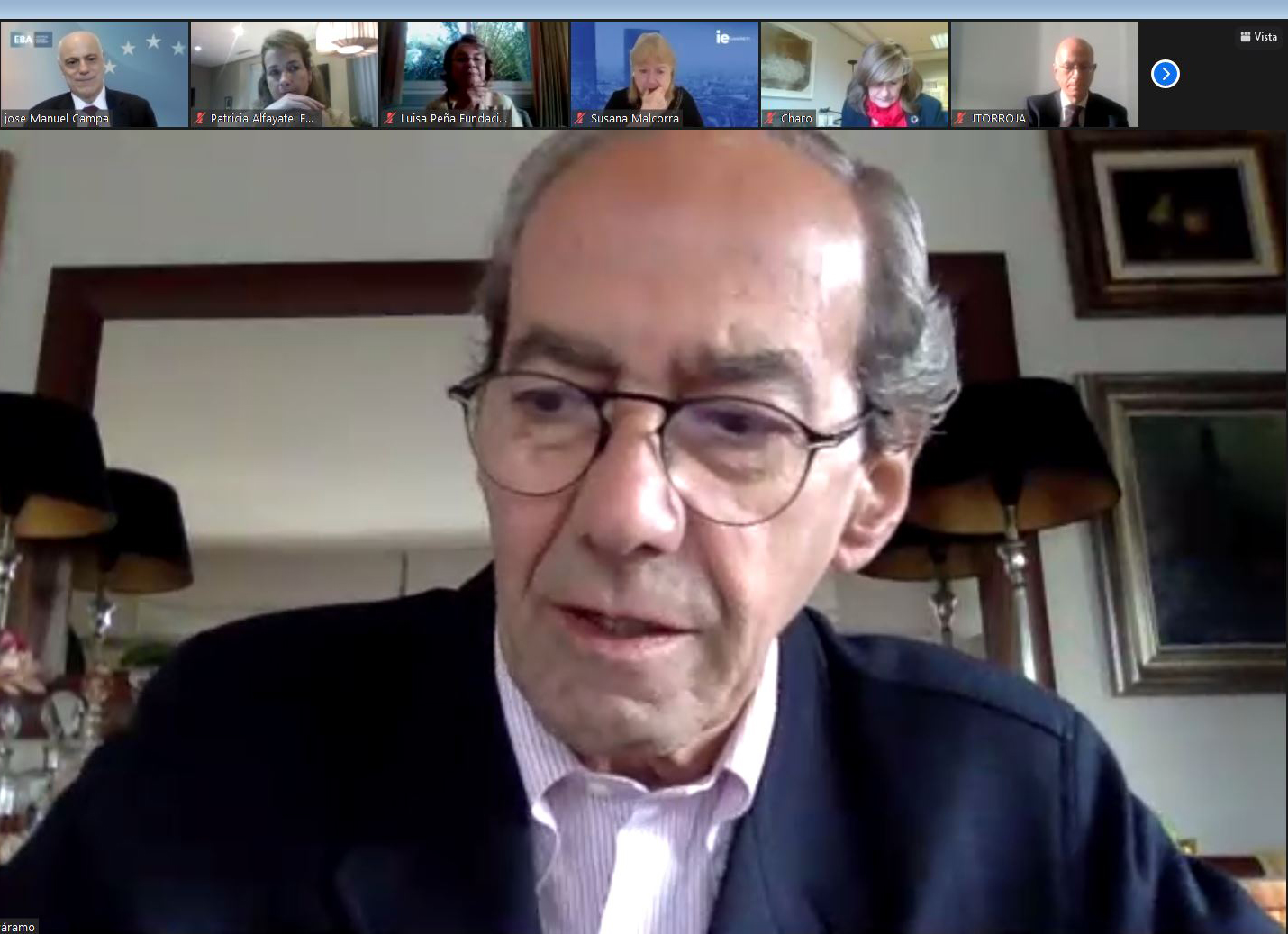 Comenzó el Presidente de la Fundación Euroamérica presentando a José Manuel Campa para examinar el estado del sistema financiero y del sistema bancario de la Unión Europea, en un contexto muy singular “de triple crisis que estamos viviendo, con tasas de interés bajísimas; transformación o reconversión tecnológica de todo el sistema financiero, y pandemia”.