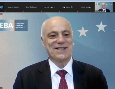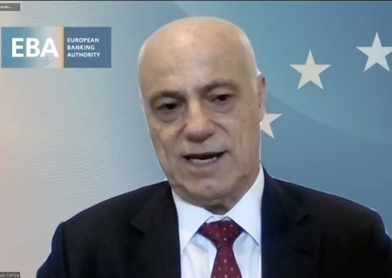 José Manuel Campa quiso comenzar su intervención con dos referencias a la función de la Autoridad Bancaria Europea (EBA). “Tiene la responsabilidad sobre todo el sector bancario de la Unión Europea, de los 27 países, no sólo de la zona Euro”. Explicó que la EBA surgió hace 10 años como resultado de la crisis anterior. Uno de los objetivos en aquel momento era la creación unas Autoridades de supervisión a nivel europeo del sector financiero. Se crearon tres: la bancaria (EBA), la de seguros y la de valores, con el fin de crear una supervisión más integrada y homogénea. En el área bancaria se produjeron dos grandes hitos que determinaron la evolución de la EBA: “El primero, en 2010, fue el comienzo de los ejercicios de estrés de la banca, que fueron muy difíciles porque se hacían en un momento (durante la crisis 2009-2012) de tensión alta, de falta de credibilidad del sector bancario”. En la actualidad, la EBA sigue realizando estos ejercicios de estrés; “precisamente hemos lanzado el ejercicio del 2021 a finales de enero y presentaremos los resultados en julio. Estamos analizando los 50 bancos más grandes de Europa, que aproximadamente suponen el 72% de los activos de todo el sistema bancario europeo”. El segundo hito fue la construcción de la Unión Bancaria, a partir del año 2012, que supone la creación de un supervisor único para gran parte de la Unión Europea, para la zona euro; “en ese sentido, la construcción de la Unión Bancaria ha sido el mayor hito de cumplimiento de la misión de la EBA”. Dentro de sus competencias en aspectos regulatorios, probablemente el producto regulatorio más desarrollado es el single rulebook de servicios bancarios.