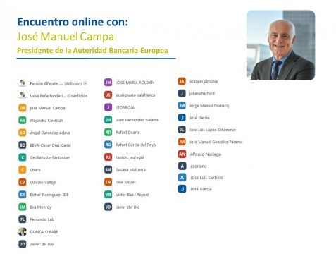 En el coloquio posterior se trataron un gran número de temas como la necesidad de transformación integral del modelo de negocio de las entidades; los gigantes tecnológicos; la normativa de resiliencia operacional ante las amenazas cibernéticas en el mercado único; los stress tests o pruebas de esfuerzo; el debate sobre el factor marrón y el factor verde; las big tech; las medidas a tomar en la banca española a futuro; el efecto de la regulación europea sobre las subsidiarias de los bancos españoles en Latinoamérica; la diversificación de los bancos europeos en la región; el shadow banking, el crowdfunding o las cripto monedas, entre otros temas.