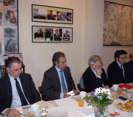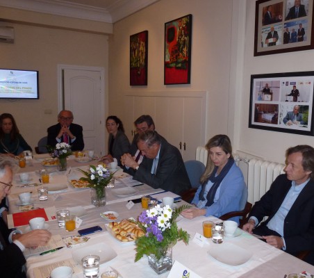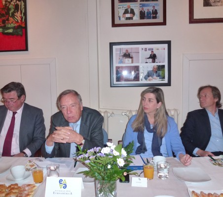 Juan Moscoso del Prado fue el invitado de honor en uno de nuestros habituales desayunos, organizados en nuestra sede. Comenzó su intervención destacando la coincidencia de un nuevo ciclo económico y político, tanto en España, como en Europa y América Latina, lo cual marcará los próximos años. Por su dilatada experiencia, hizo una exposición sobre la situación económica y política en Europa, con sus retos y objetivos, destacando la necesidad de aumentar la competitividad de sus empresas con una firme apuesta por la innovación, para posicionarse en los nuevos mercados, en un contexto cada vez más globalizado. A continuación se centró en América Latina, haciendo un repaso por la situación de cada país y las asociaciones comerciales que existen en la región, para concluir hablando de Estados Unidos y las negociaciones del TTIP con la Unión Europea. En un ambiente de confianza, durante el coloquio posterior con los asistentes al desayuno, el invitado de honor contestó a las diferentes preguntas que le formularon, centrándose al final en su visión acerca de las elecciones en España y del nuevo panorama político con la coexistencia de los partidos tradicionales y los surgidos recientemente. |
