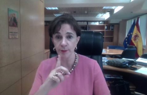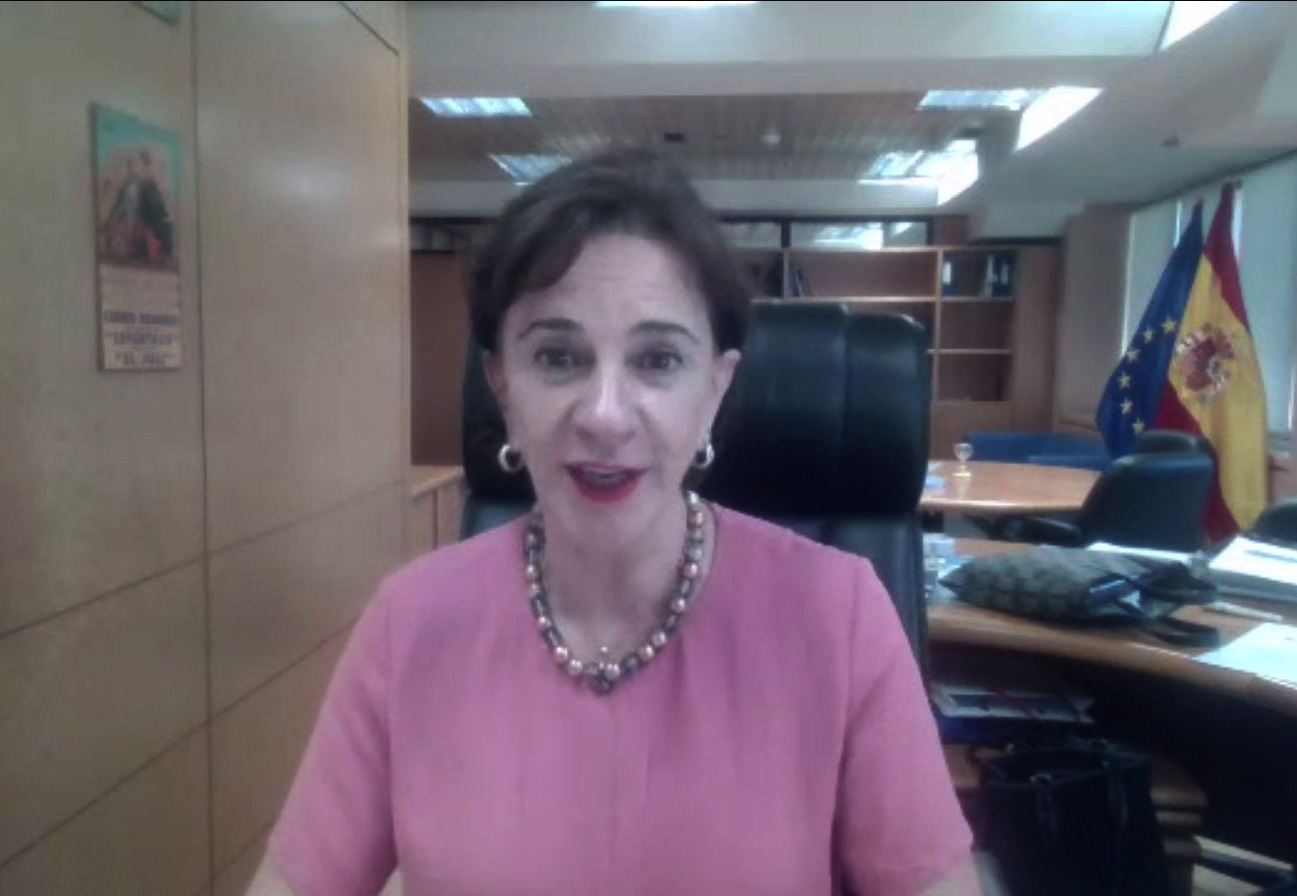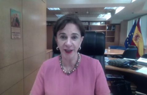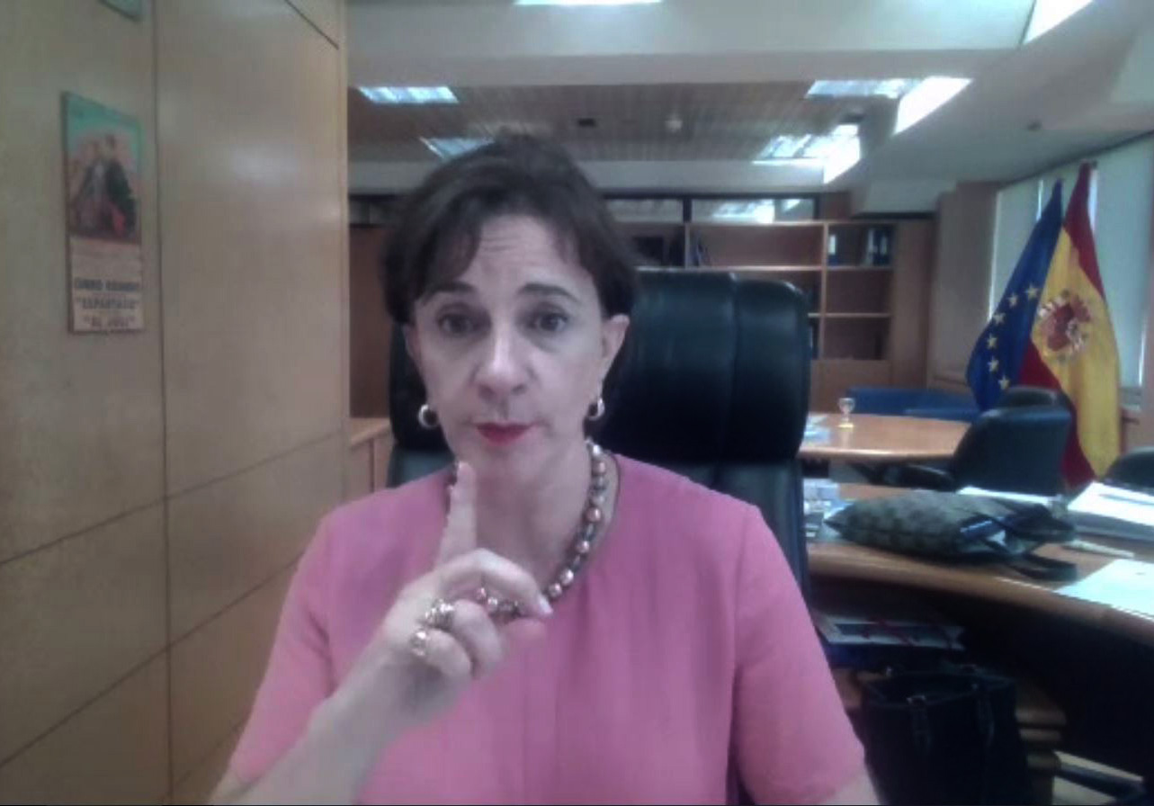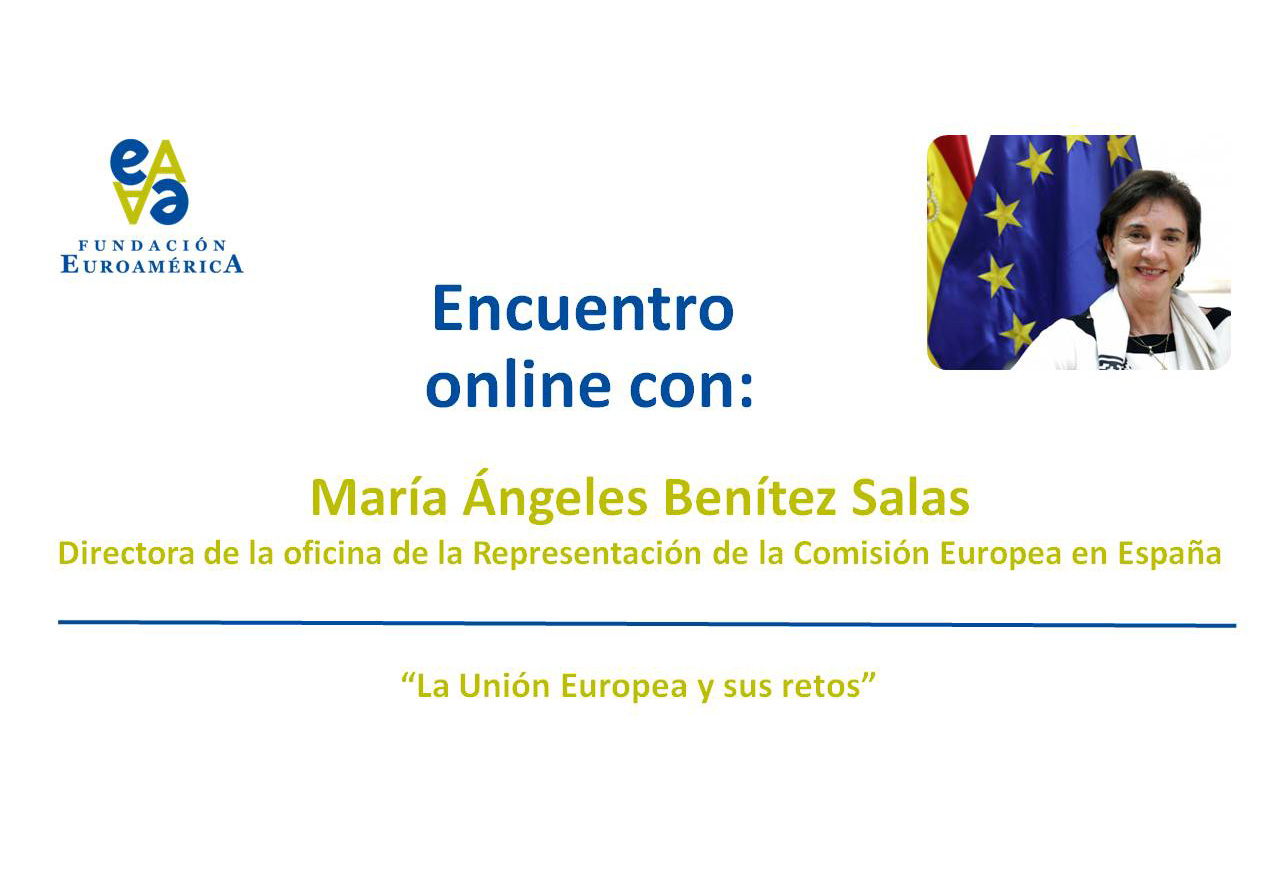 El vicepresidente Salafranca presenta a la invitada de honor Ángeles Benítez comentando que ha asumido su responsabilidad en pleno proceso de la conferencia sobre el futuro de Europa, cuando se está debatiendo también el plan de recuperación, y cuando la Unión Europea trata de afirmar su situación internacional a través de una nueva posición de autonomía estratégica. Recordando su estancia en Buenos Aires como Ministra Consejera –lo que hace que lleve los temas latinoamericanos en el corazón y que los conozca- le da la palabra.