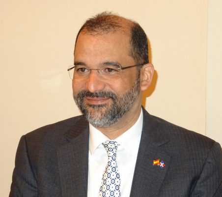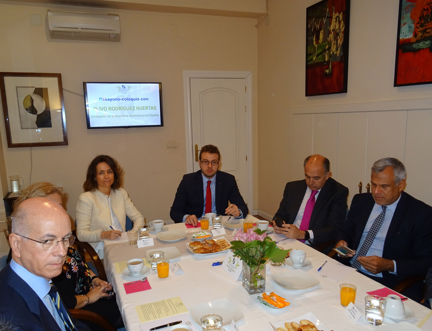 El Embajador de la República Dominicana, Olivo Rodríguez Huertas, comenzó su intervención indicando que la reforma constitucional llevada a cabo en 2010 bajo la presidencia de Leonel Fernández fue la más importante llevada a cabo en el país, en la que se establece la naturaleza del Estado y se define el papel subsidiario de éste en las relaciones comerciales, primando la economía de mercado y la libre iniciativa del sector privado como motor de transformación de la economía. Así pues el país dominicano tiene, en palabras de su Embajador, unas reglas definidas de libre competencia y la asunción del arbitraje nacional e internacional para la resolución de controversias. La firma de acuerdos comerciales internacionales como el TLC con la Unión Europea es fruto de esta apuesta por el libre mercado.