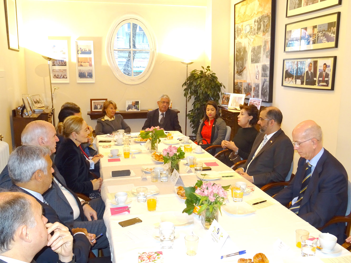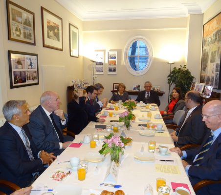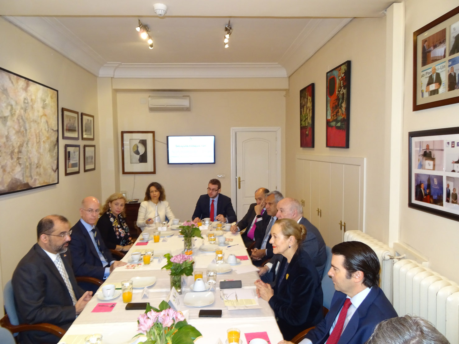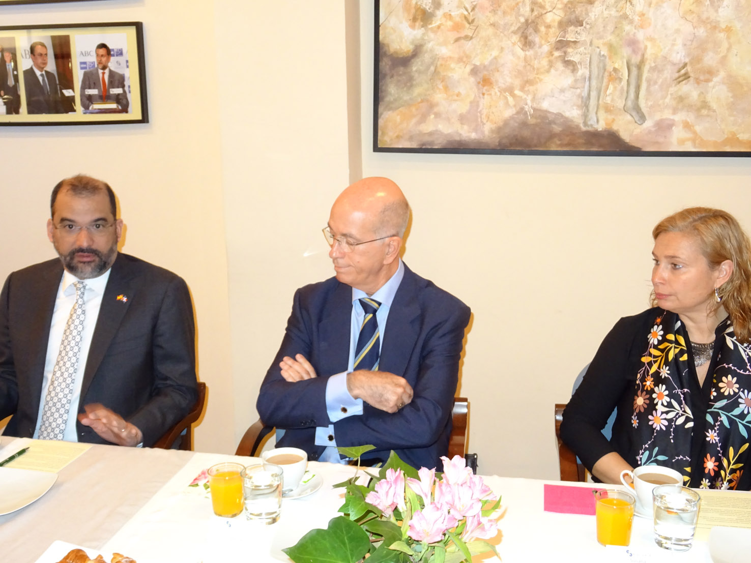 En relación con España, el Embajador resaltó la extraordinaria relación entre los dos países, de carácter histórico, con una gran emigración española la cual ha formado un importante tejido empresarial que mantiene una intensa relación con ambos países.