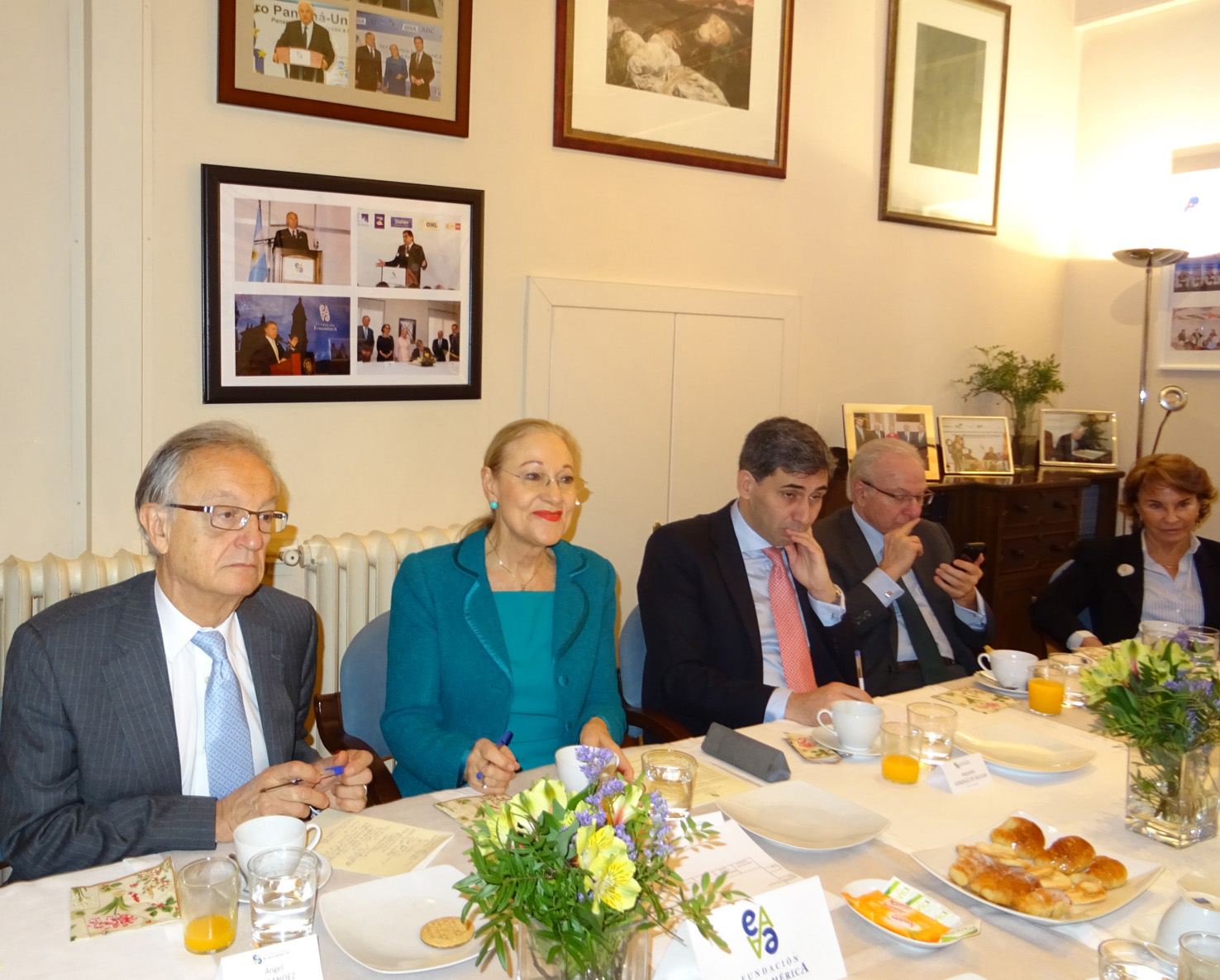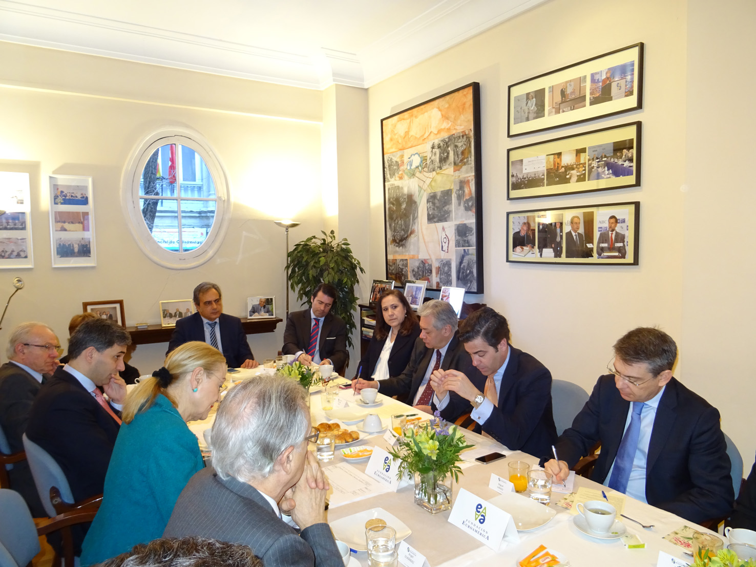 Por su experiencia anterior como Diputado en el Parlamento Europeo y miembro de la Comisión de Asuntos Exteriores, el Sr. Zalba comenzó su intervención con un breve análisis de la situación actual de las relaciones entre la Unión Europea y América Latina, resaltando el beneficio desde el punto de vista comercial de la existencia de los tratados vigentes entre estas dos áreas geográficas (México, Chile, Centroamérica, Colombia y Perú), haciendo hincapié en la oportunidad que supondría la firma del acuerdo con Mercosur. Desde el punto de vista español, América Latina ha sido y es clave para la internacionalización de nuestras empresas, objetivo prioritario para el ICO, que ha llegado a acuerdos con organismos multilaterales iberoamericanos como CAF, BIC y está en conversaciones con el BID para potenciar las ayudas a las empresas con proyectos en la región. A continuación hizo un breve resumen del estado del sector financiero, palanca para la internacionalización de las empresas españolas, mencionando los bajos tipos de interés, las nuevas normas de regulación bancaria y la irrupción en este sector de nuevos actores como Google, Amazon o Facebook.