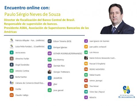 Tras la exposición del Sr. Neves, se inició el coloquio con los asistentes al acto, comenzando el Secretario General de ASBA, Sr. O’Dogherty, quien destacó “la presencia de los bancos españoles que es muy importante en nuestra región”. Resaltó igualmente que “en todos los países de América Latina el comportamiento con la pandemia ha sido relativamente similar y el impacto en los bancos ha sido menor al esperado”; En el caso de Brasil, comentó que “una parte muy importante de la deuda brasileña está en manos de inversionistas brasileños, lo que le hace menos vulnerable a los flujos del exterior y a una reversión de flujos, que siempre es el miedo al que nos enfrentamos en los países en desarrollo”. Esto, entre otras cosas, “les ha permitido poder bajar las tasas de interés de una manera agresiva” lo que confiere “una gran fortaleza a la economía brasileña y muchísimo más margen de maniobra al Banco Central”.