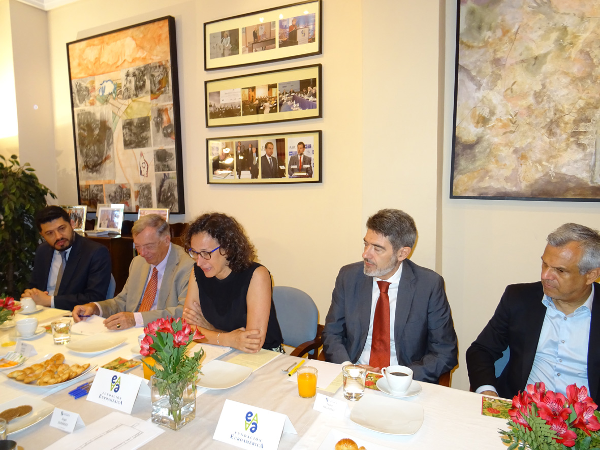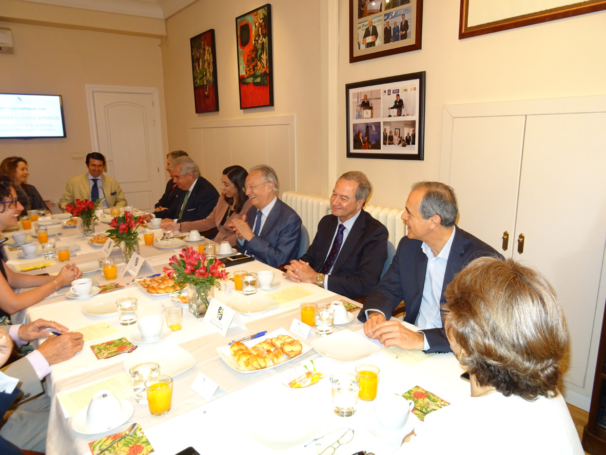 En el coloquio posterior con los asistentes se trataron diversos temas como la educación y la concienciación a las nuevas generaciones, así como las campañas de sensibilización para todos los ciudadanos; los instrumentos de colaboración en materia de cambio climático con América Latina; el papel de China, India y Estados Unidos en esta materia; el desarrollo de infraestructuras sostenibles, que son proyectos con una gran rentabilidad a L/P a pesar de tener un mayor coste inicial entre un 3 -5%; el desarrollo de las tecnologías verdes; la Huella de Carbono y su obligatoriedad en un futuro; la transición energética; la ley de financiación del transporte público, que ayudará a la reducción de emisiones; la energía nuclear y otras alternativas de energía sostenible, entre otros temas.