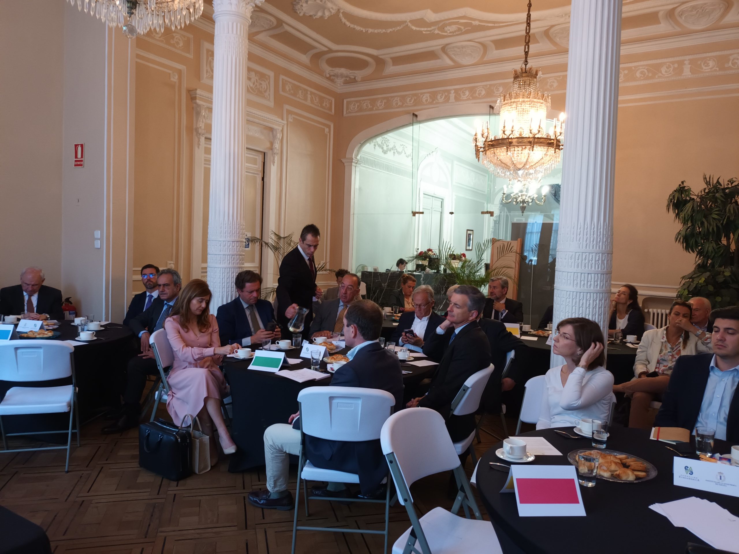 Comenzó el desayuno-coloquio con la intervención de José Manuel González-Páramo, quien señaló que el debate en la Unión Europea sobre la reactivación del Pacto de Estabilidad se produce en un marco de crecimiento económico a la baja y tipos de interés altos que posiblemente se mantengan en 2024 y comiencen a bajar en 2025. “Es claro que el Pacto hay que reactivarlo, pero reformado”. La propuesta de reforma pone el foco en la sostenibilidad de la deuda, ahora Marco de Gobernanza Económica: se simplifica eliminando muchas referencias y contempla una mayor flexibilidad con mayor gradualidad, con un plazo de 4 años que puede llegar a 7. Su valoración de la propuesta es positiva pero deberá centrase en el análisis de estabilidad, el refuerzo de la Sareb y las cláusulas de salvaguarda.