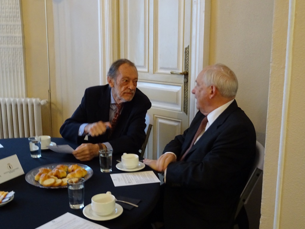 Después de ambas intervenciones dio comienzo un coloquio con los asistentes en el que se plantearon temas como la situación concreta de España, los compromisos de la política de defensa que se van acumulando y continuarán por el entorno actual, la forma de pago de los Fondos Next Generation, etc.