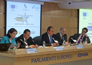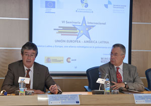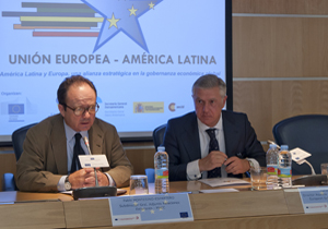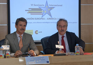 José Ignacio Salafranca, Presidente de la asamblea Eurolat, Eurodiputado del PPE, y Francisco Fonseca, Director de la representación de la Comisión Europea en España, en el acto de clausura del Seminario |