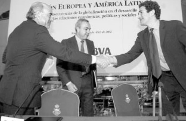 Francisco González saluda a James Rubin, en presencia de Nemesio Fernández-Cuesta.