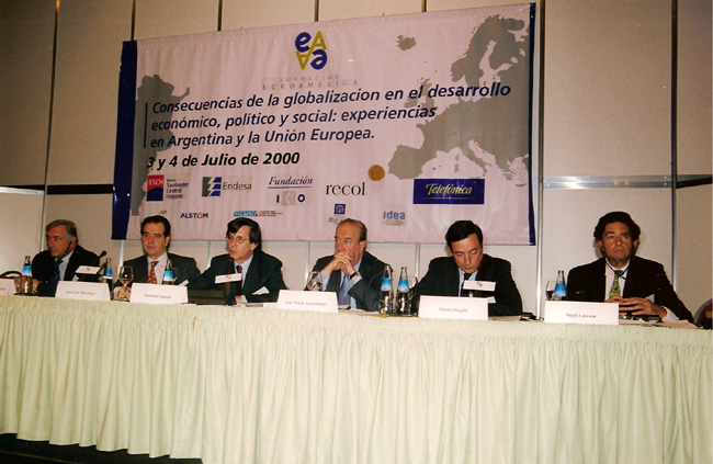 | Dominique Strauss-Kahn, ex Ministro de Finanzas de Francia; José Luís Machinea, Ministro de Economía de Argentina; Germán Sopeña, La Nación, Argentina; José María Amusátegui, Presidente del Banco Santander Central Hispano; Mario Draghi, Director General del Ministerio del Tesoro de Italia y Nigel Lawson, ex Ministro de Finanzas del Reino Unido |
