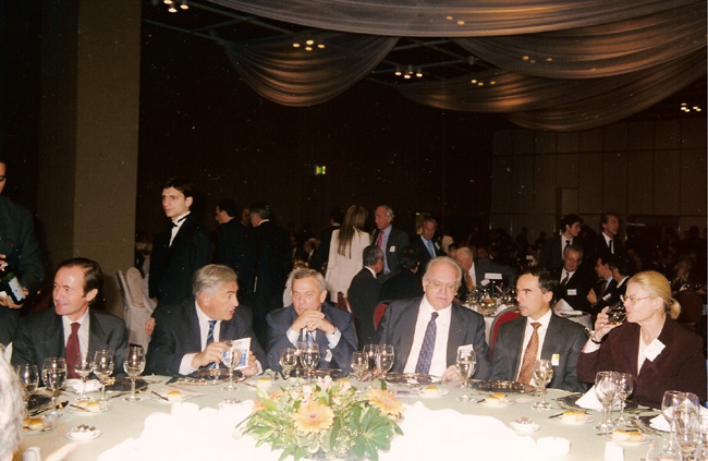 | Dominique Strauss-Kahn, ex Ministro de Finanzas de Francia y Carlos Solchaga, ex Ministro de Economía y Hacienda de España, junto con otros invitados al almuerzo del lunes 3 de julio |