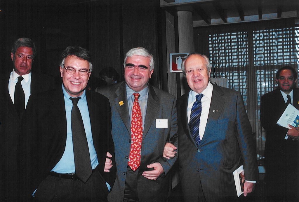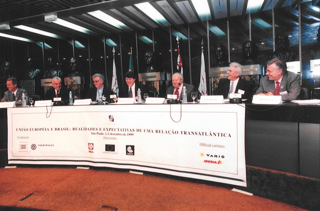 Felipe González, ex Presidente del Gobierno español; Alain Barrau, Presidente Delegación UE y Mário Soares, ex Primer Ministro y ex Presidente de la República de Portugal. Durante el Foro celebrado por la Fundación Euroamérica en Sao Paolo 1999
