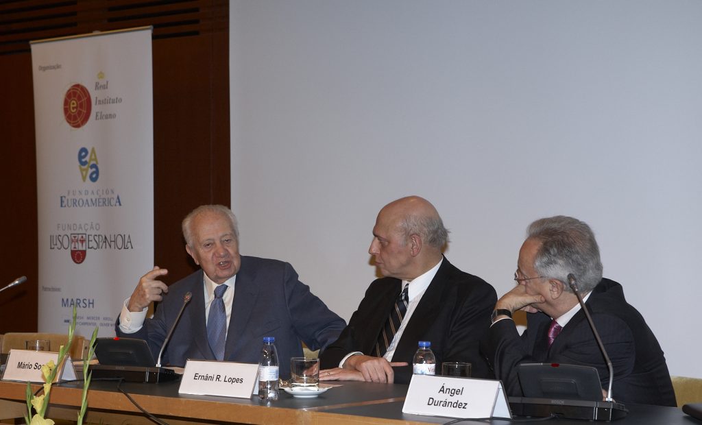 En el centro Mário Soares junto al Presidente de honor de la Fundación Euroamérica Tristan Garel-Jones y otros ponentes durante el I Foro Brasil-UE organizado por la Fundación