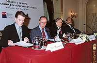| José Ángel Gurría, Ministro de Hacienda, México. Carlos Gómez, Presidente del Banco Santander Mexicano. Josep Piqué, Ministro de Industria y Energía de España, y Herminio Blanco, Ministro de Comercio y Fomento Industrial de México. |