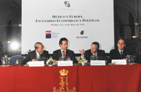 | Tristan Garel-Jones, Ex Ministro para Europa, Reino Unido. Douglas Hurd, Ex Ministro de Asuntos Exteriores, Reino Unido. José María Michavila, Secretario de Estado de Relaciones con las Cortes, España, y Carlos Hurtado, Coordinador de Asesores para Asuntos de Política Económica y Social, Presidencia de la República, México. |