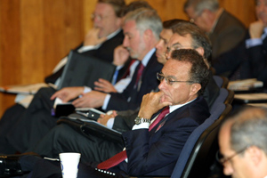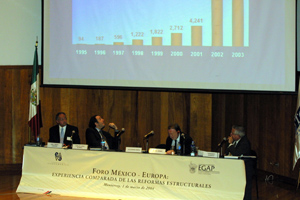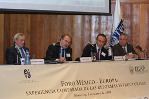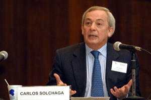 Carlos Solchaga, ex Ministro de Economía y Hacienda, España; Pedro Solbes, Comisario para Asuntos Económicos y Monetarios, Unión Europea; Guillermo Ortiz, Gobernador del Banco de México, y Fernando Jáuregui, Director y Editor de Ociocritico.com, España