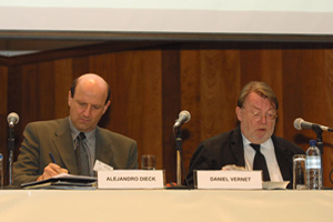 Alejandro Dieck, Coordinador de Asesores del Secretario de Economía, México, y Daniel Vernet, Director de Relaciones Internacionales, Le Monde, Francia