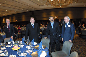 Álvaro Espina Montero, Daniel Vernet, José Natividad González y Carlos Solchaga, en la cena de clausura