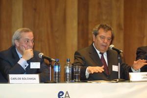 Carlos Solchaga, ex Ministro de Economía y Hacienda, España, y Porfirio Muñoz Ledo, Embajador de México ante la Unión Europea