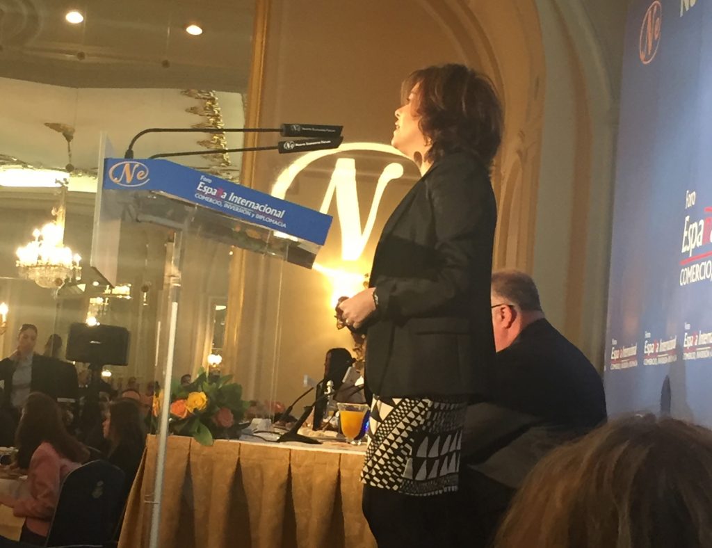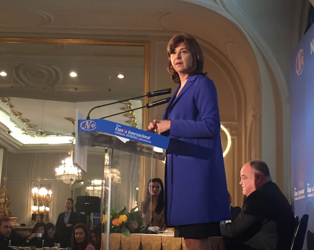 Siempre al lado de la Embajada de Colombia en España, la Fundación Euroamérica asistió el 1 de marzo al desayuno con la Ministra de Asuntos Exteriores de Colombia, María Ángela Holguín, quien fue presentada por la Vicepresidenta del gobierno y ministra de Presidencia y para las Administraciones Territoriales de España, Soraya Sáenz de Santamaría, quien alabó la labor del Presidente Santos en pro de la Paz, reiterando el apoyo incondicional del gobierno de España a Colombia, no sólo desde nuestro país sino desde las instituciones europeas, remarcando así la excelente relación bilateral entre ambos países. Por su parte, la Canciller Holguín expuso con claridad las razones por las que el Presidente Santos apostó por el proceso de paz y que incluyen, no sólo el bienestar de los ciudadanos colombianos sino el progreso económico y social de su país.