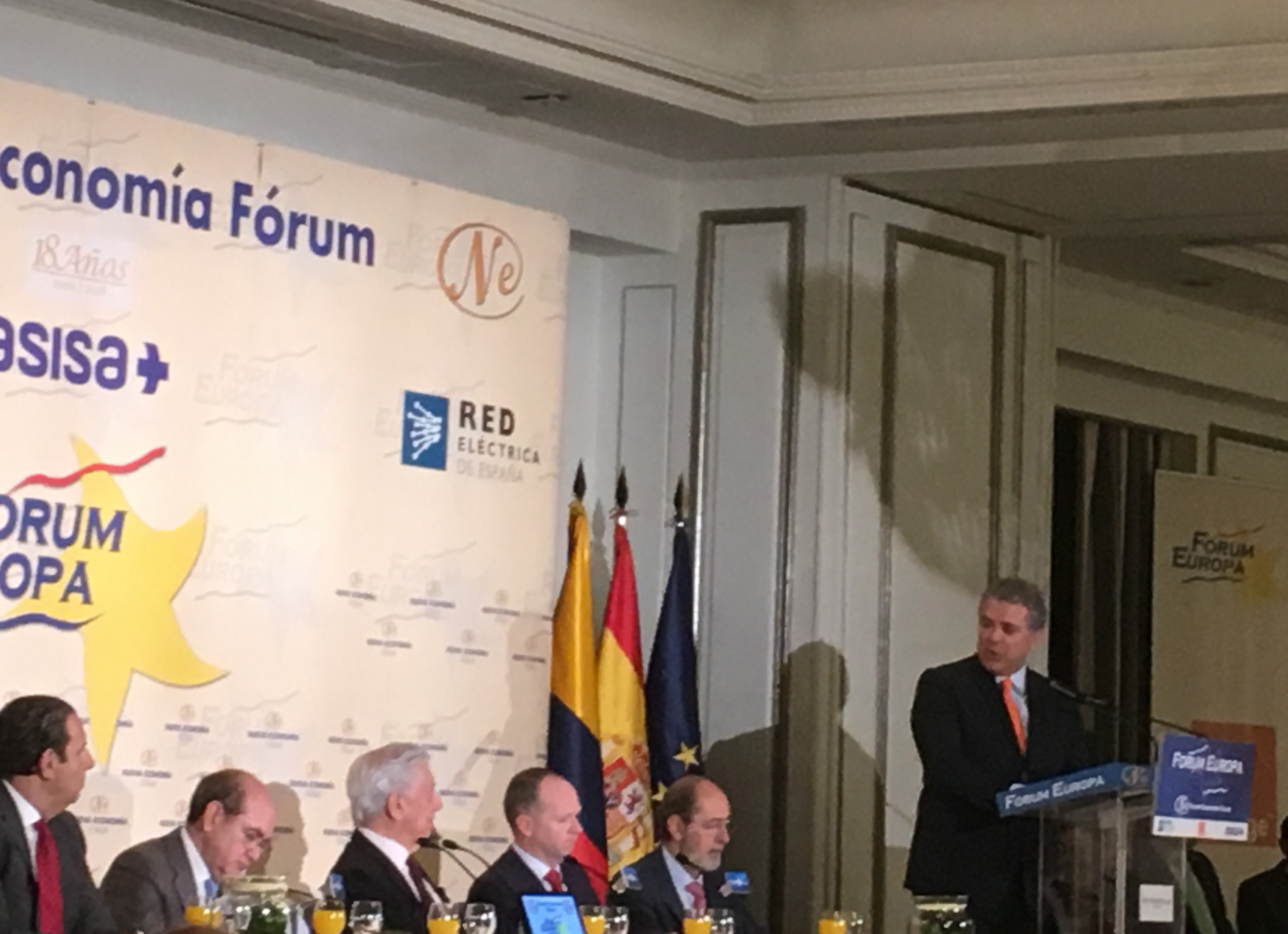 Iván Duque, ‘tomará las riendas’ de Colombia en la próxima ceremonia de investidura del 7 de agosto. Estos días, se encuentra de gira por tierras europeas y, hoy en España, es el invitado de honor de un desayuno informativo organizado por Nueva Economía Forum. Una representación de la Fundación Euroamérica, encabezada por la Directora General, asiste al encuentro.