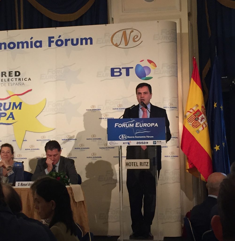 Destacó la necesidad del sector privado para cerrar la brecha en materia de infraestructuras y transportes que existe entre América Latina y su principal competidor, Asia, que cuantificó en 125.000 millones de US$. Resaltó que para el sector público asumiera esta cantidad tendría que invertir durante los próximos 20 años el doble de la cantidad que ya ha invertido. Ante la inviabilidad de este hecho, reconoce el papel fundamental del sector privado, por su capacidad de ejecución, por su rapidez y por la calidad de los servicios prestados. Por ello resaltó que el BID apoya el desarrollo de las Asociaciones Público-Privadas en las legislaciones de todos los países de la región. En la actualidad están muy presentes en sectores como las telecomunicaciones, las infraestructuras y transportes, y en países como Brasil, México Colombia y Chile. A continuación indicó dos problemas importantes en los que BID está trabajando para favorecer la ejecución exitosa de estas asociaciones: la falta de proyectos bien estructurados y planificados y la falta de un mercado de capitales, en especial de deuda, que soporte estas inversiones a largo plazo. Resaltó también que en enero de 2016 el Grupo BID consolidó sus operaciones del sector privado en la Corporación Interamericana de Inversiones, CII, para servir mejor a la región, clientes y socios, y para maximizar su impacto en el desarrollo. En el turno de preguntas con el público asistente calificó de oportunidad la nueva política proteccionista del nuevo gobierno de Estados Unidos, ya que ha provocado por un lado la apertura de México hacia América Latina y Europa y, por otro, el fortalecimiento de las relaciones comerciales entre la Unión Europea y Latinoamérica como socios estratégicos.