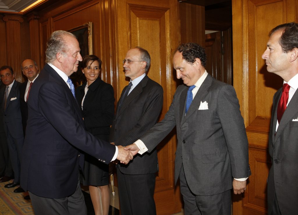 S.M. el Rey saluda a Carlos Gereda y de Borbón durante la audiencia,